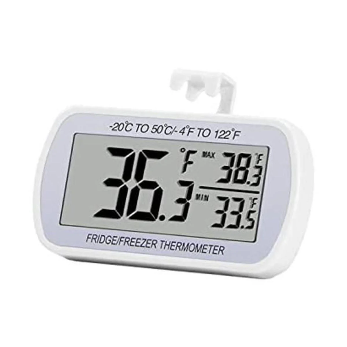 Termómetro para refrigerador, termómetro digital para congelar, impermeable, pantalla LCD grande, función de registro máximomínimo, color blanco