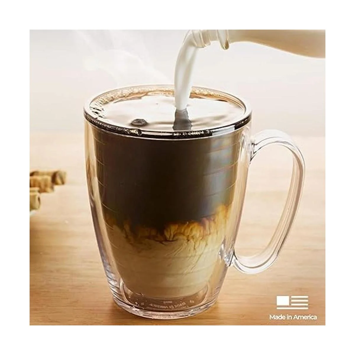Nuestra taza clásica de 16 onzas cuenta con un mango cómodo y fácil de agarrar.