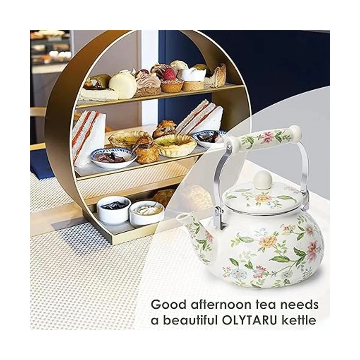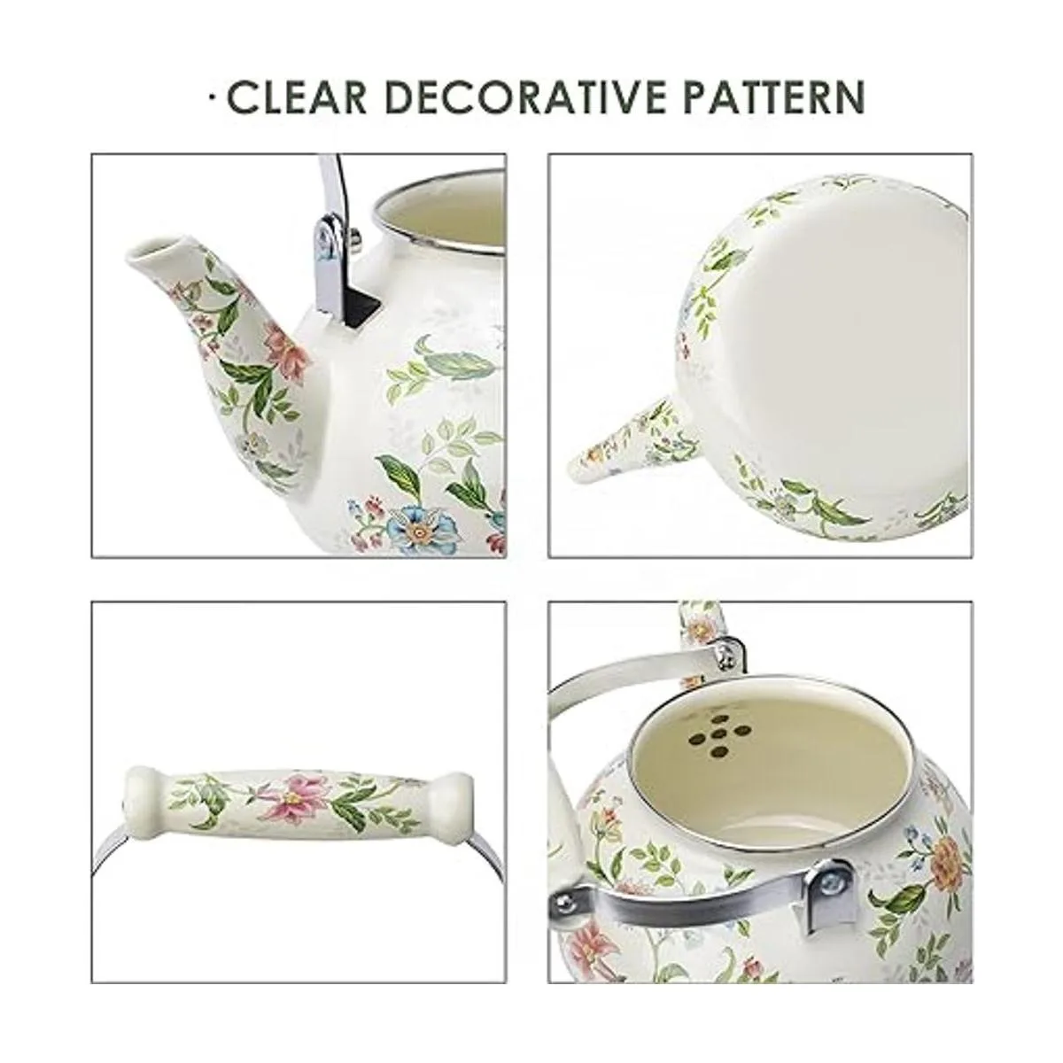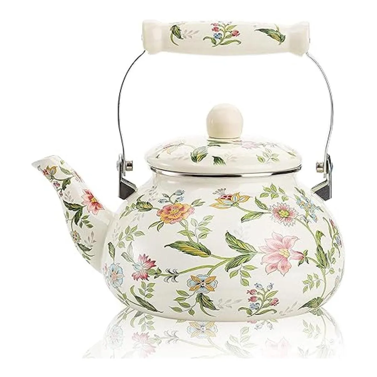 Tetera esmaltada de cerámica floral para estufa, tetera esmaltada de porcelana grande floral