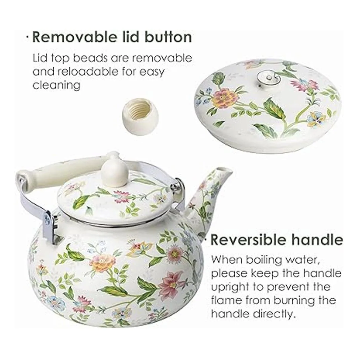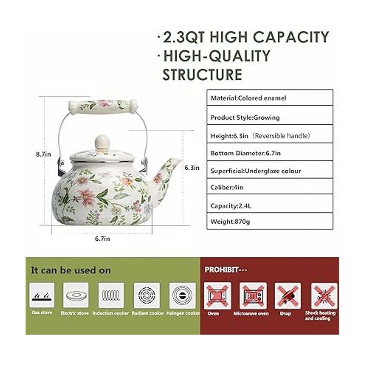 Tetera esmaltada de cerámica floral para estufa, tetera esmaltada de porcelana grande (floral)