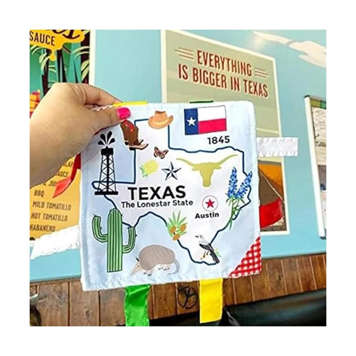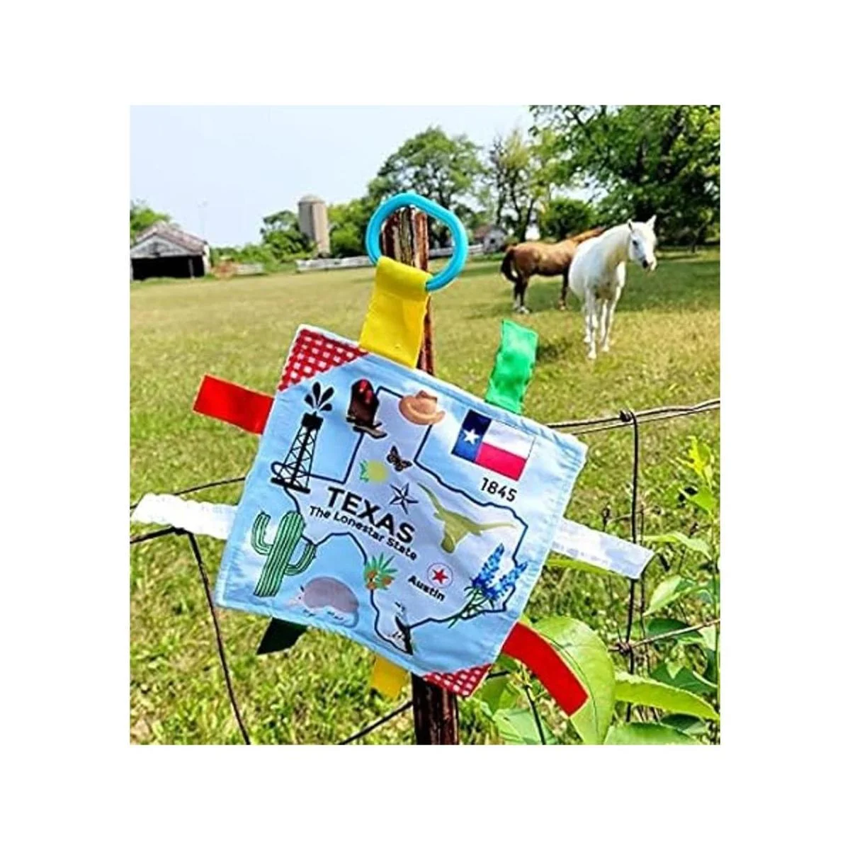Texas Baby Paper Tag Toy Crinkle Me Lovey para el tiempo de barriga, juego sensorial, viajes y fotografía