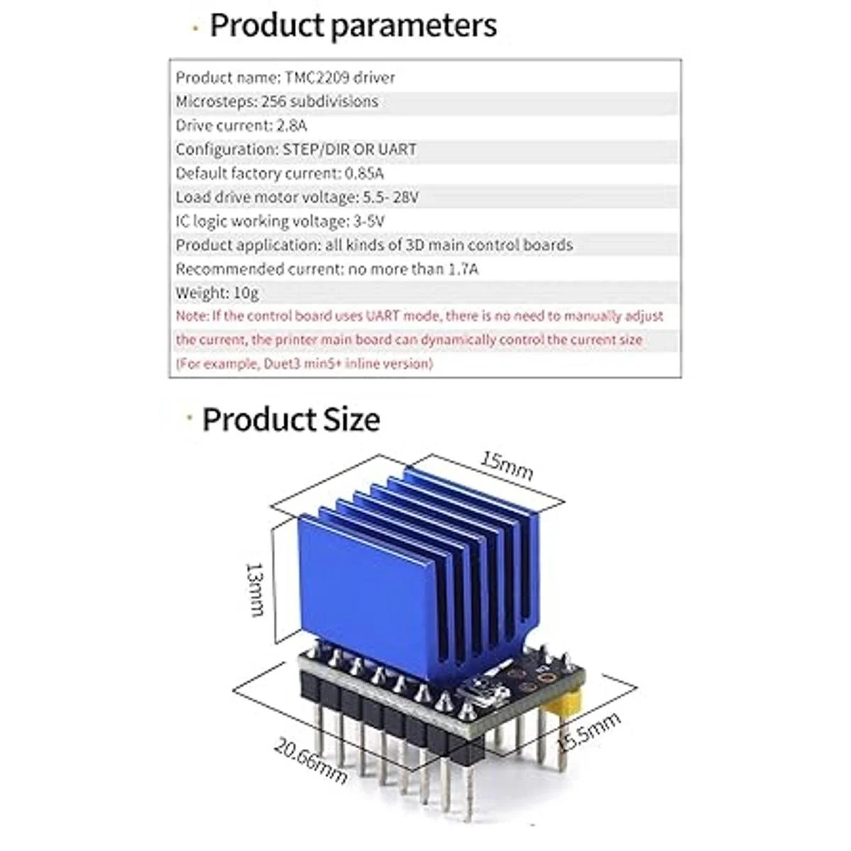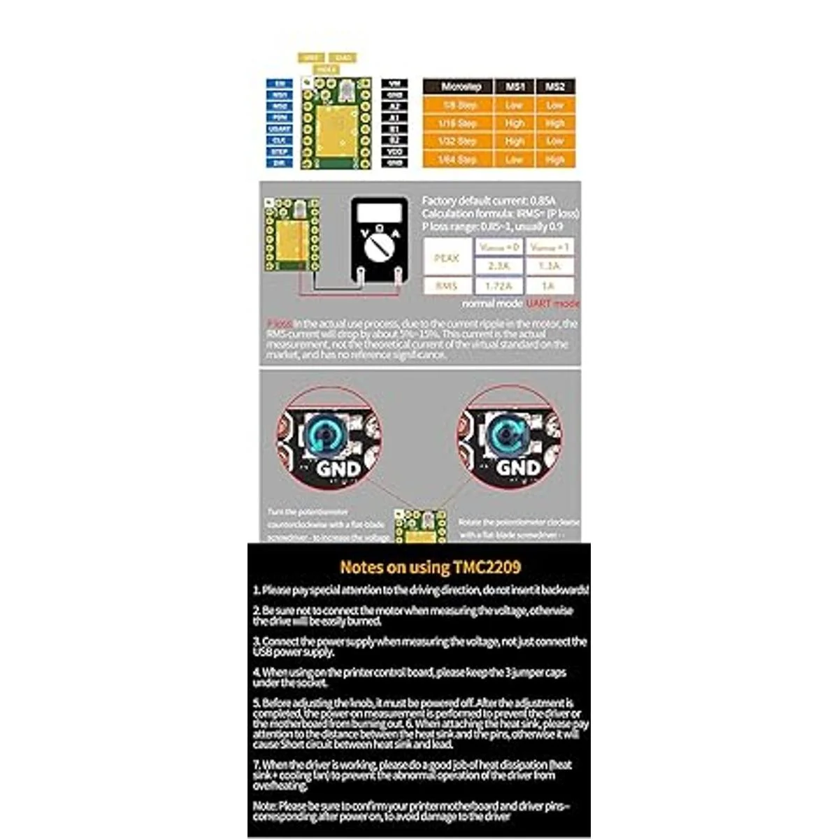 Teyleten Robot TMC2209 V2.0 Controlador de motor paso a paso StepStick 2.5A UART Ultra Silencioso para Nano SKR V1.31.4 Ender 3 Placa de control 3D Piezas de impresora A4988 5 piezas