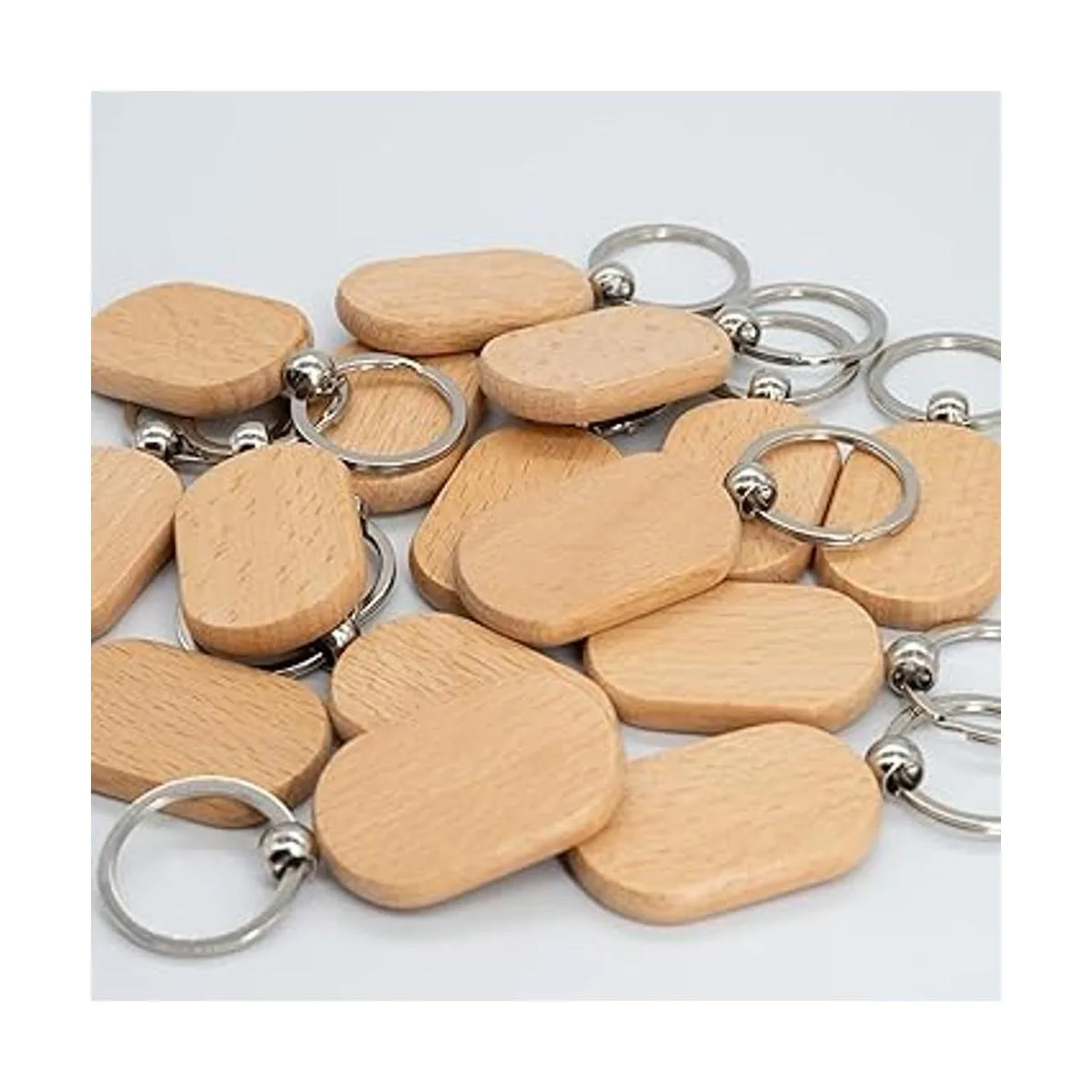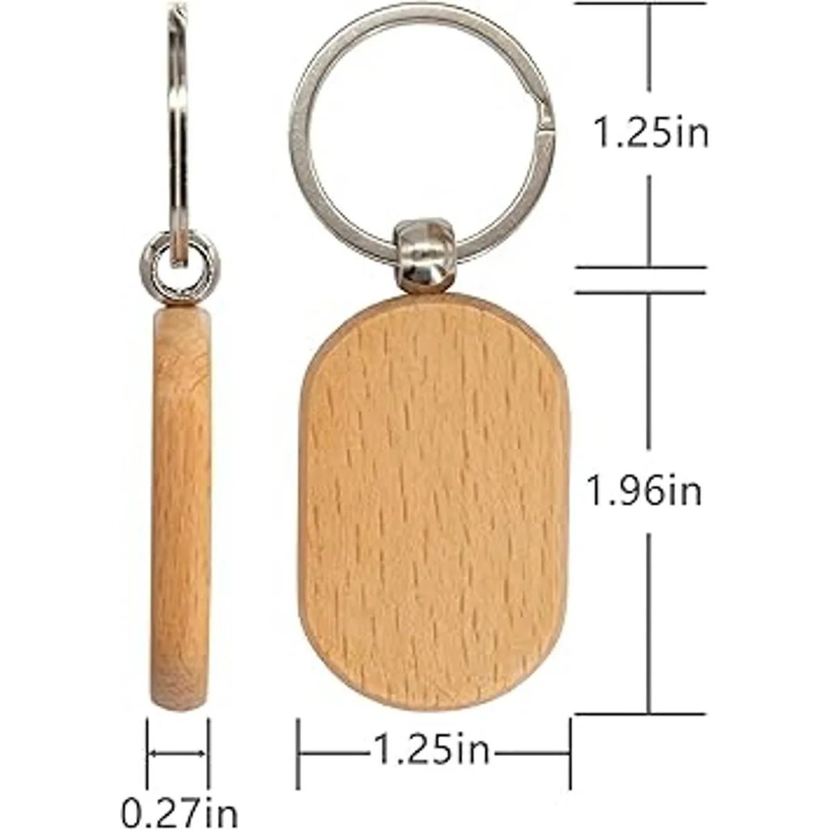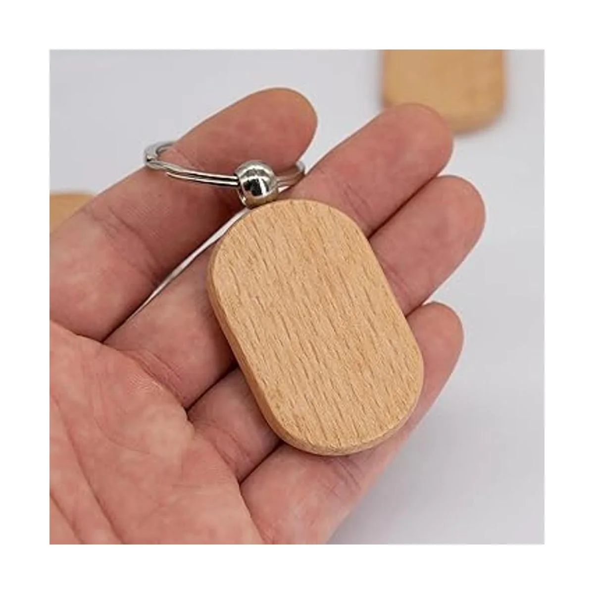 TFoRibbon Llavero de madera en blanco, rectangular, grabado de madera, paquete de 20 unidades