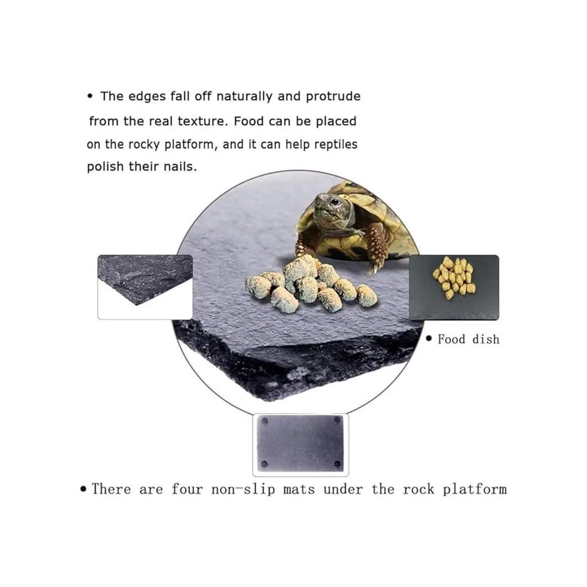 Rango de aplicación: Reptile Rock es adecuado para comer, beber y bañarse. Para tortugas, serpientes, ranas con cuernos, ranas toros, selva tropical, lagartos. Disponible en una variedad de tamaños para adaptarse a una variedad de casas de terrario.