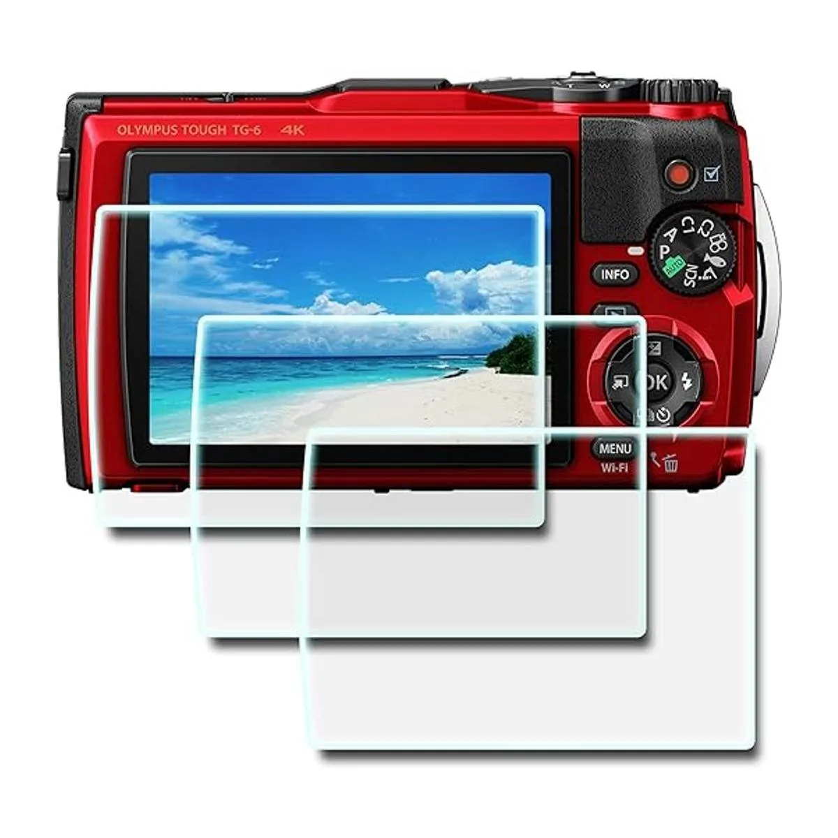 TG6 Protector de pantalla, compatible con Olympus TG5 tg5 tg6 Sports cámara impermeable, 0.012 in 9H dureza ultra alta definición resistente a los arañazos y burbujas protector de pantalla de cristal templado 3 unidades