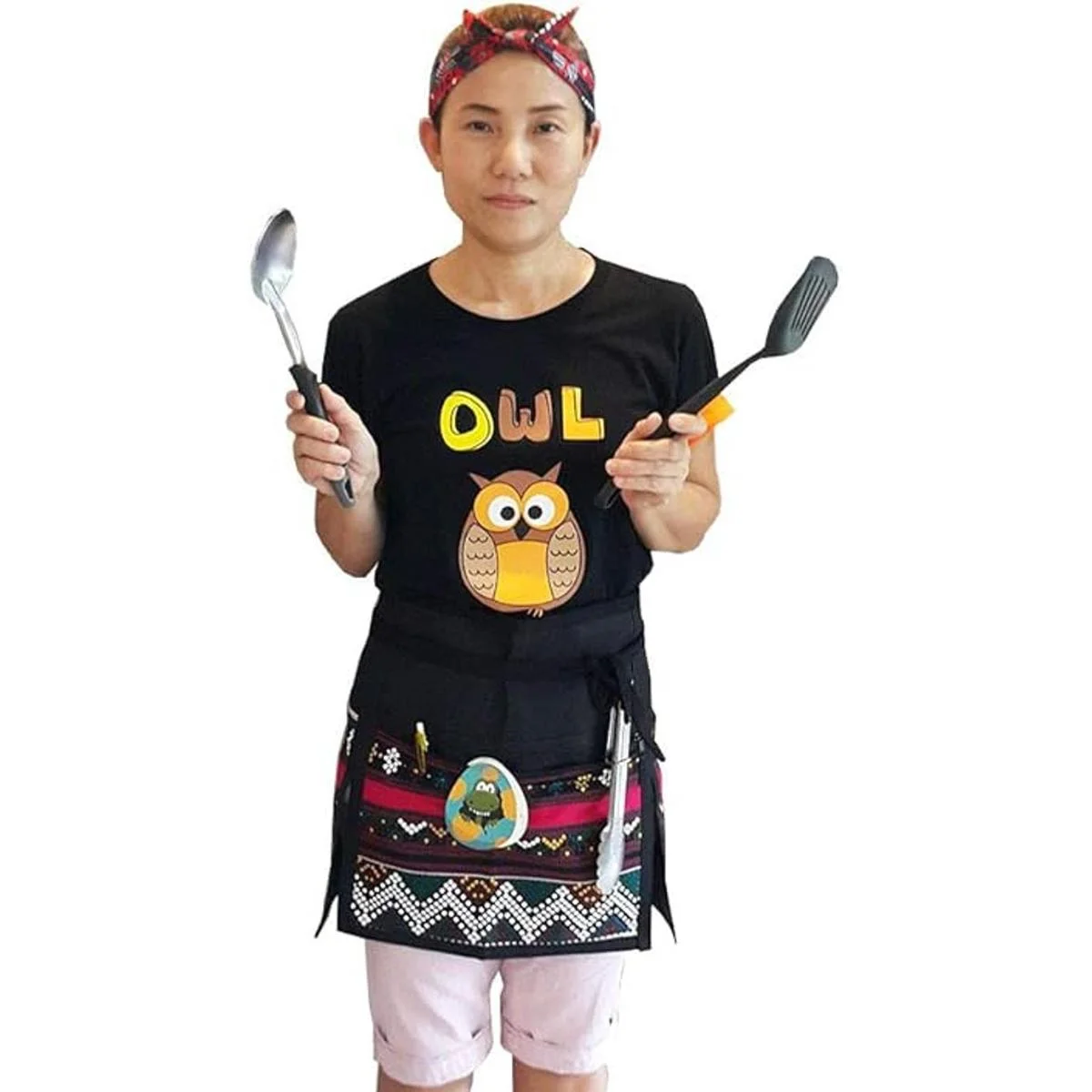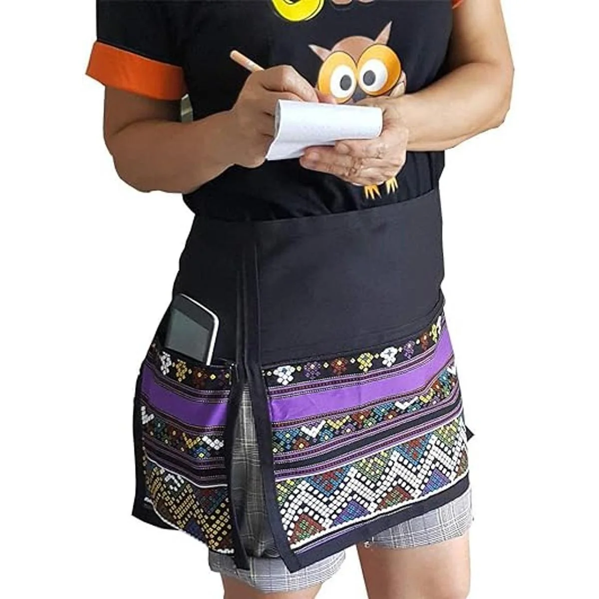 Para añadir diseños de belleza utilizados en las primeras etapas Thai Identity Folk patrón diseño del artículo se utilizan en la vida cotidiana, se aplican a varios patrones en el paño. Tejido cómodo de polialgodón profesionalmente dobladillo y cosido estos delantales de camarera están hechos de comercial, que es una combinación de mezcla fina de poliéster y algodón y por lo tanto los hace un delantal de cintura de aspecto ordenado y poco crease.