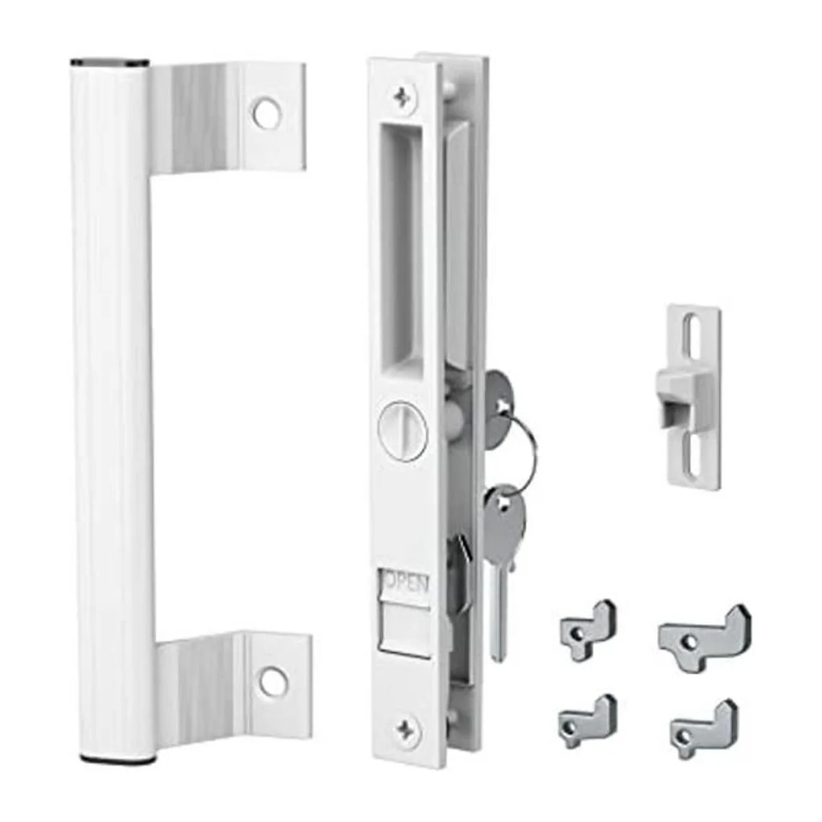 THAKEN Juego de manijas de puerta corrediza de cristal, 658 pulgadas, color blanco, reemplazo de manija de puerta de patio que es de 1 pulgada a 118 pulgadas de grosor utilizado tanto en zurdos como en diestros. llave.