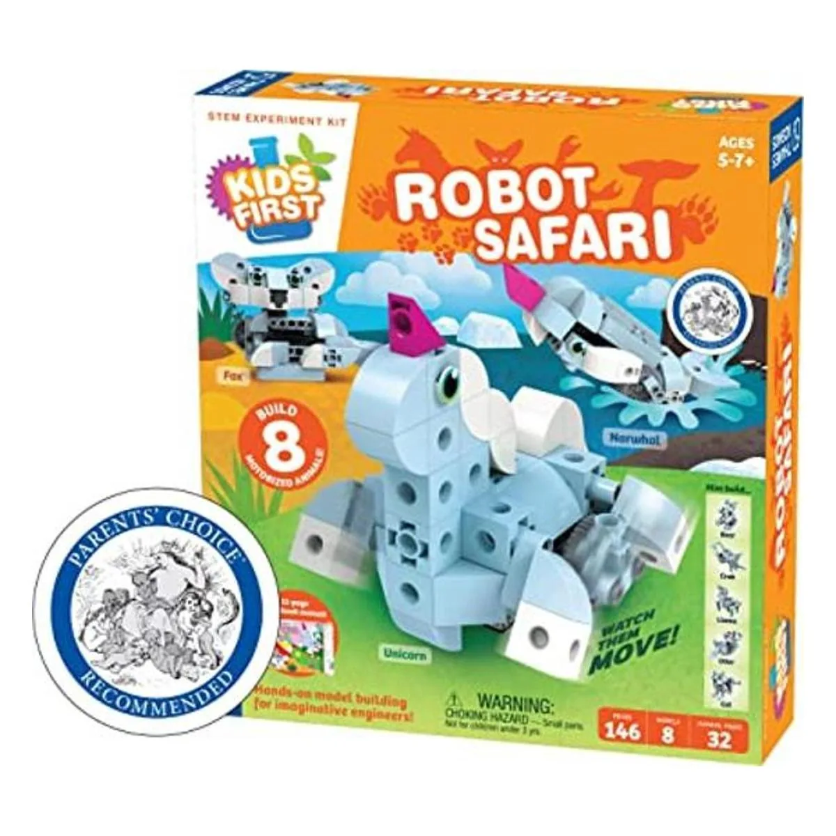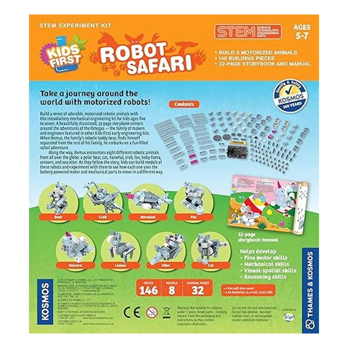 Thames Kosmos Kids First Robot Safari introducción a máquinas motorizadas kit de experimento científico para edades de 5 a 7 años, construye 8 animales robóticos, incluyendo un unicornio, llama, narval y más