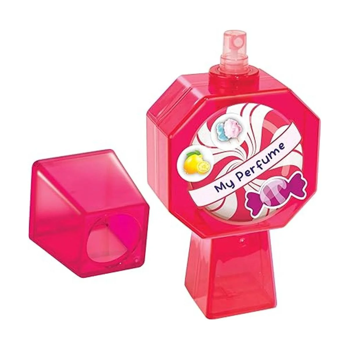 Incluye una variedad de herramientas como una botella de perfume grande en forma de caramelo con atomizador y una estación de experimentación de plástico.