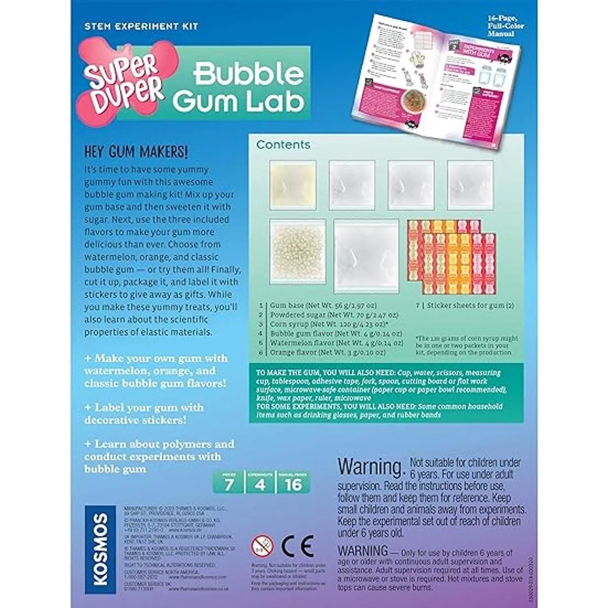 Thames Kosmos Super Duper Bubble Gum Lab Kit de experimento y actividad STEM Haz tu propia goma de mascar deliciosa en 3 sabores Aprende sobre la ciencia de materiales elásticos Ingredientes alimentarios incluidos