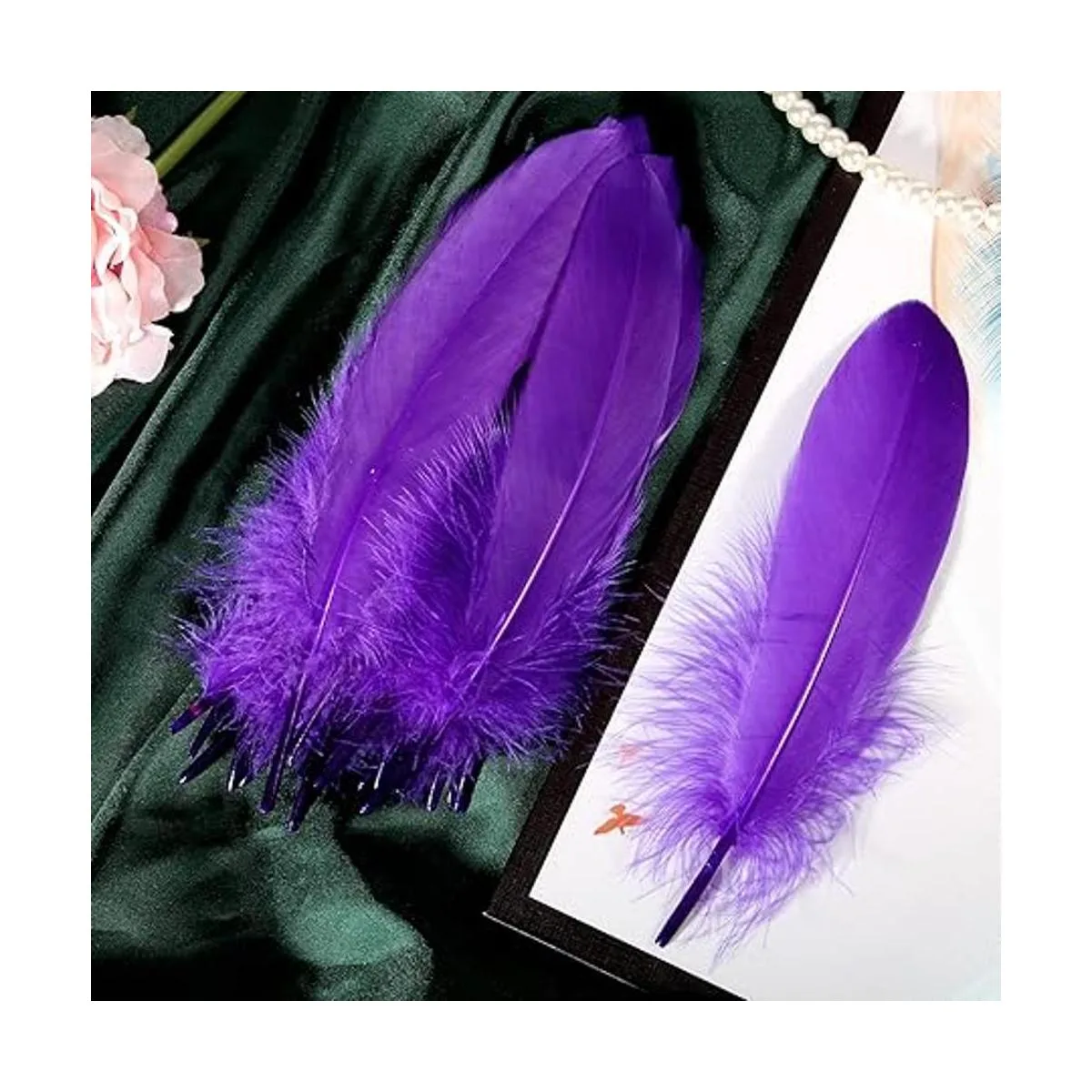 THARAHT 120 plumas de ganso moradas naturales a granel de 6 a 8 pulgadas, 15 a 7.9 in para manualidades, bricolaje, cosplay, boda, fiesta, Halloween, decoración de plumas de ganso