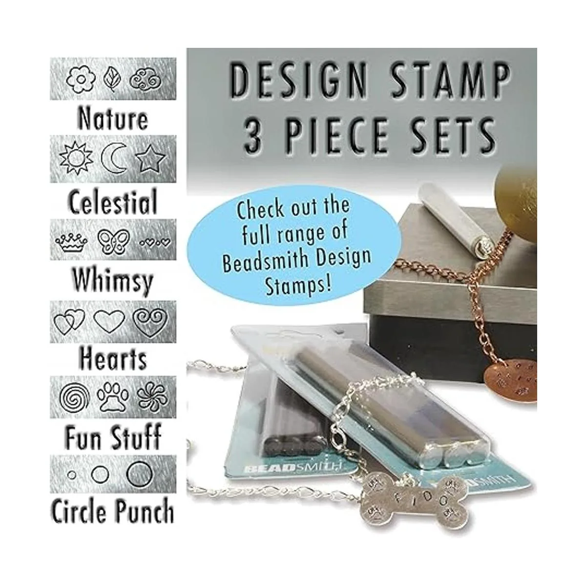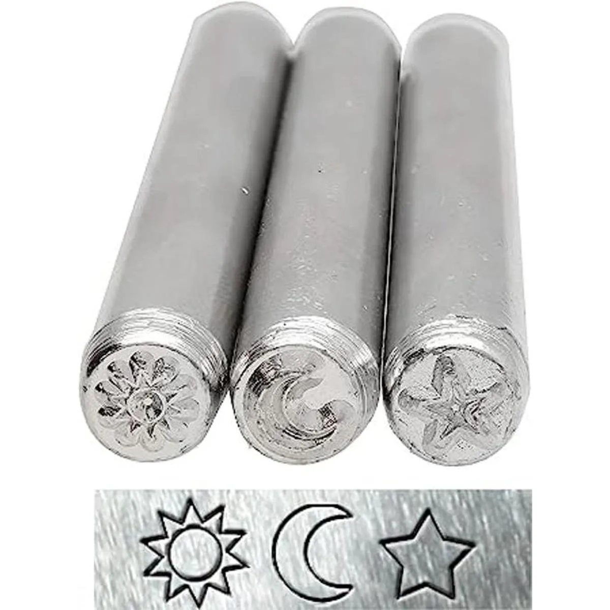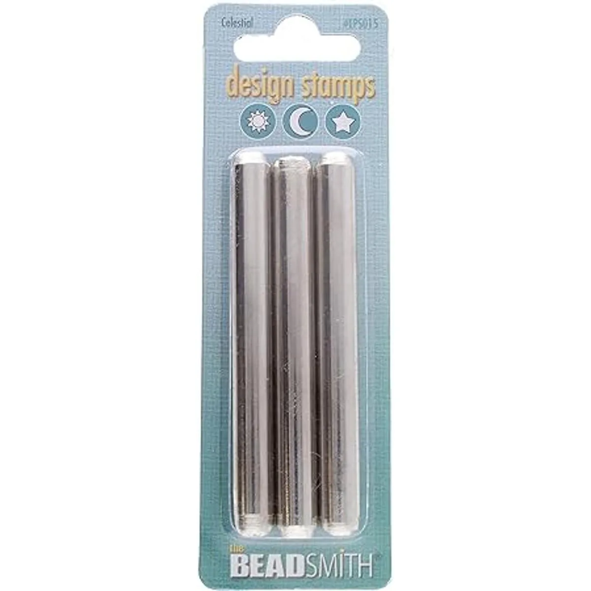 The Beadsmith Sellos de diseño de acero, elementos metálicos, juego de 3 piezas de diseño celestial de 0.197 in, longitud de 3.125 pulgadas con base de sello de 0.25 pulgadas, para hacer joyas personalizadas, se utiliza para sellar y personalizar metales blandos