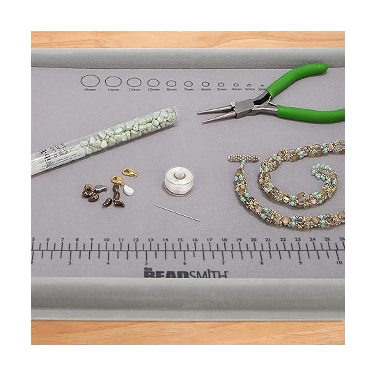 The Beadsmith Treasure Mat Bandeja y alfombrilla 11 x 14 pulgadas Bandeja flocada gris con cubierta Base antideslizante de goma Tablero de diseño para hacer joyas