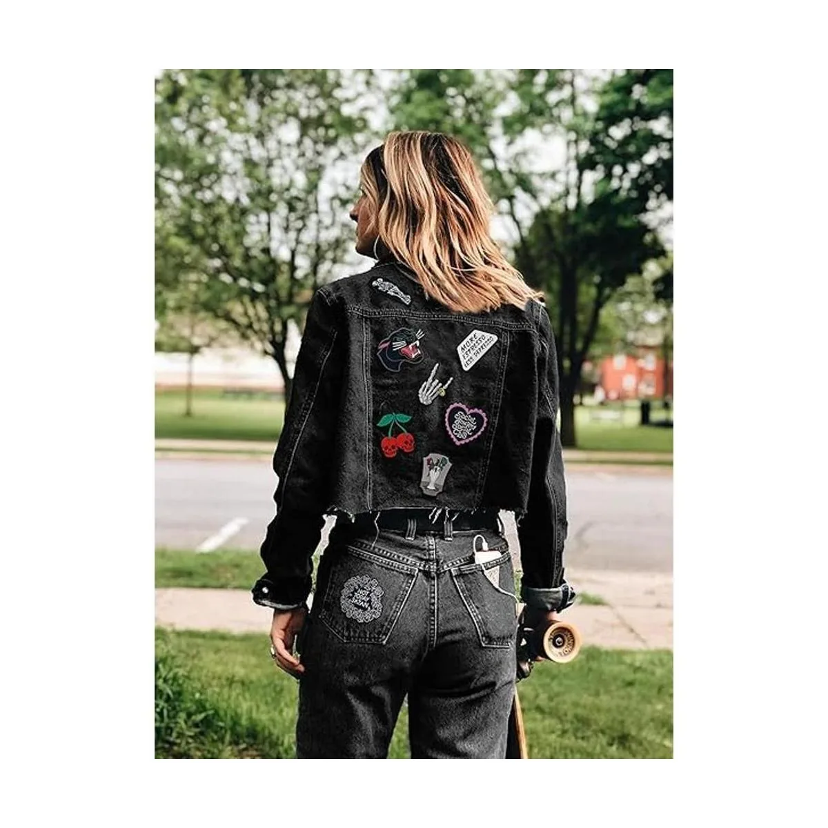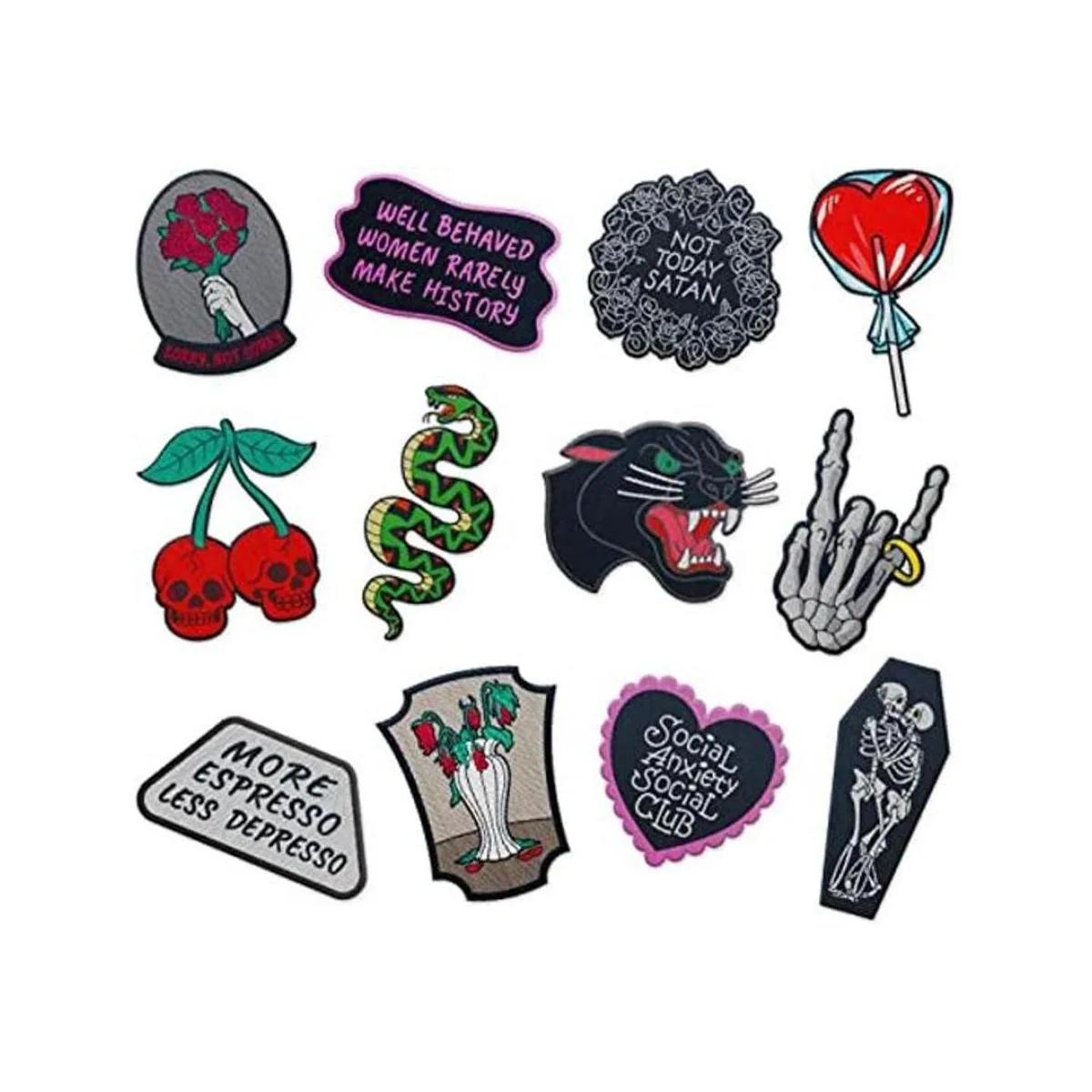 The Carefree Bee Parches para planchar en ropa Juego de 12 parches punk geniales para jeans, chaquetas y ropa Bordado hippie moderno para coser en parches espeluznantes para niñas adolescentes juego 6
