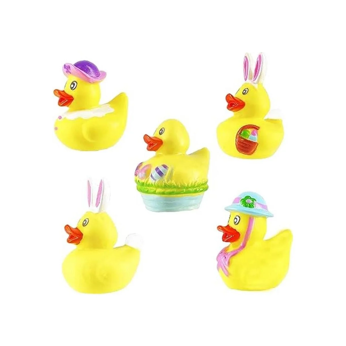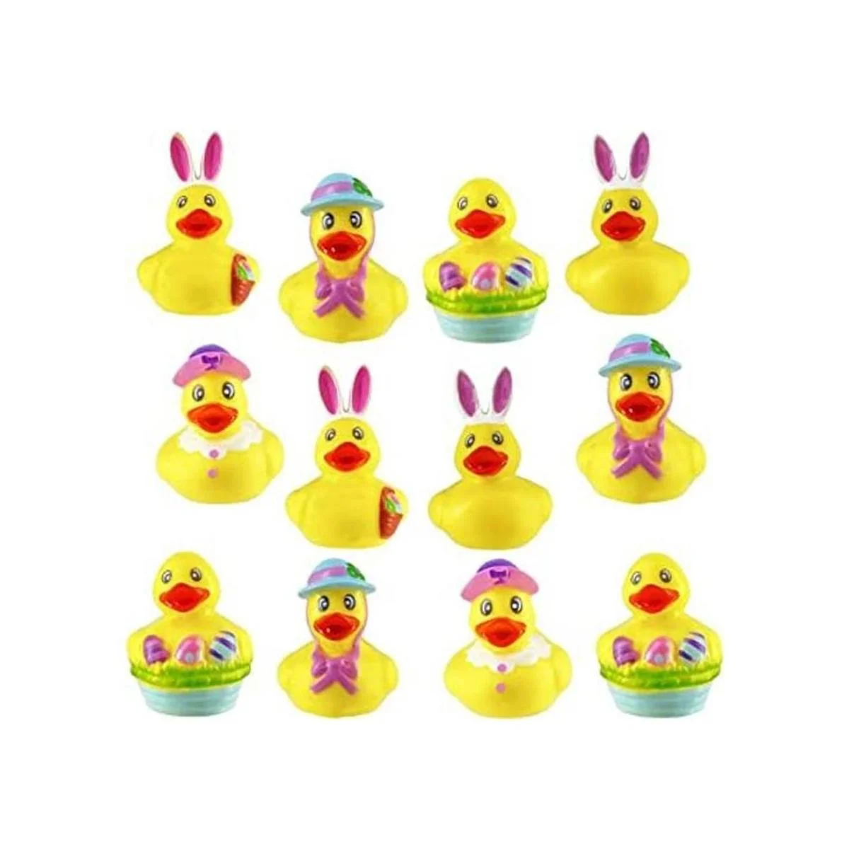 The Dreidel Company Happy Easter goma pato juguete conejito conejito patitos para niños huevos de Pascua, baño regalos de cumpleaños Baby Showers verano playa y piscina actividad, 2 pulgadas paquete de 12
