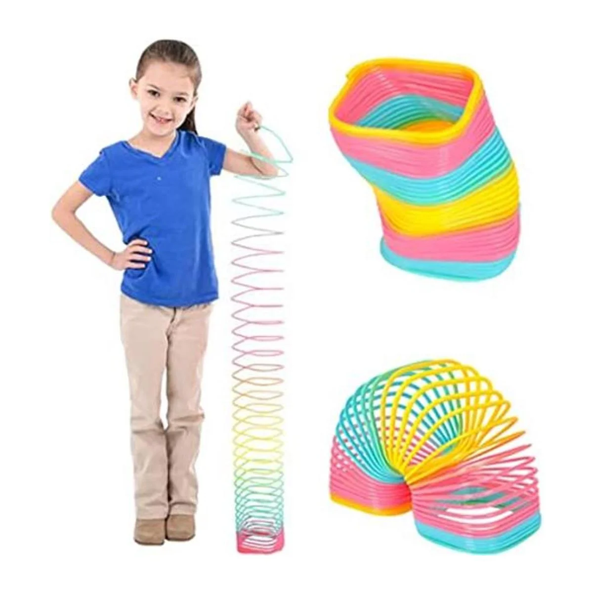 Resorte cuadrado gigante: este juguete de resorte de plástico cuadrado jumbo de color arcoíris proporciona horas de entretenimiento sin fin. A los niños les encanta jugar con ellos y verlos saltar por las escaleras
