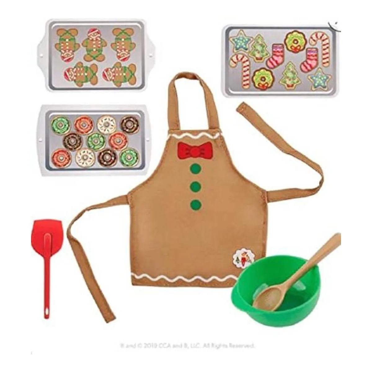 El juego de panadería de ITTY BITTY BITTY BAKER permite a tu elfo explorador mostrar su talento culinario, con un delantal temático de pan de jengibre de tamaño elfo, cuenco y cucharas de mezcla, y espátula de cartón y bandejas adornadas con icónicos dulces de Navidad