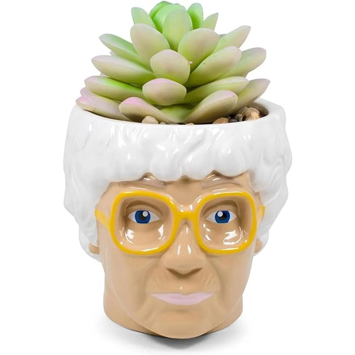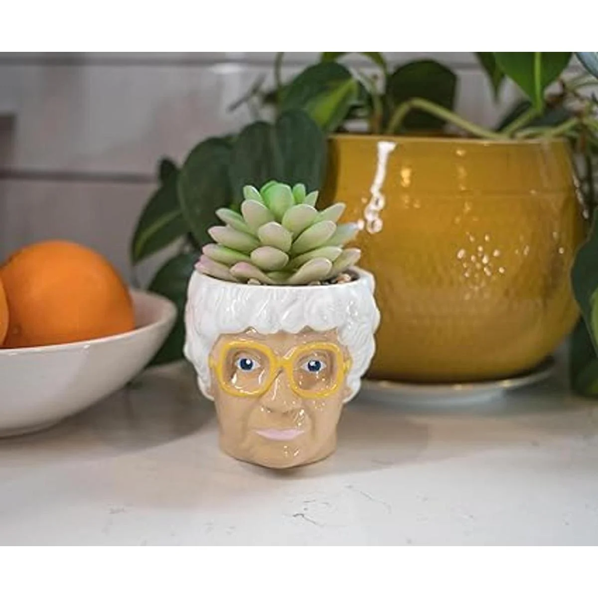 The Golden Girls Sophia Face Mini Maceta de cerámica Programa de televisión oficial Maceta pequeña para plantas de interior, incluye suculentas artificiales, 3 pulgadas