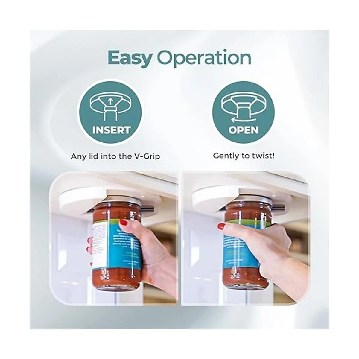 NO STRAIN OR PAIN: Our under counter jar opener does all the work because unlike other jar lid openers, youre free to use both hands and arms as LEVERAGE, making it easy and painfree. Also why its perfect as an effortless arthritis jar opener, jar openers for seniors with arthritis, or canning jar opener for sealed lids.