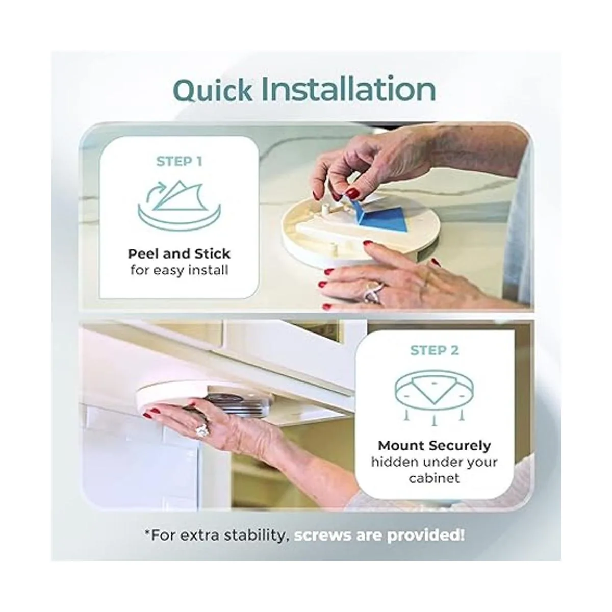 EASY INSTALLATION: This can opener under cabinet is simple and very easy to install. Peel off the cover of the twinstick tape, apply the bottle jar lid opener tool to the cabinet, and mount it securely screws providedall DONE IN MINUTES