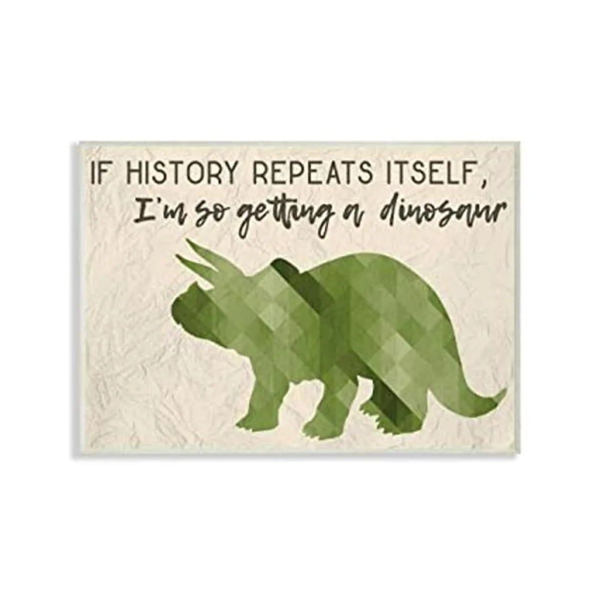 The Kids Room by Stupell Im So Getting a Dinosaur Green Triceratops Placa decorativa para pared, fabricado en Estados Unidos