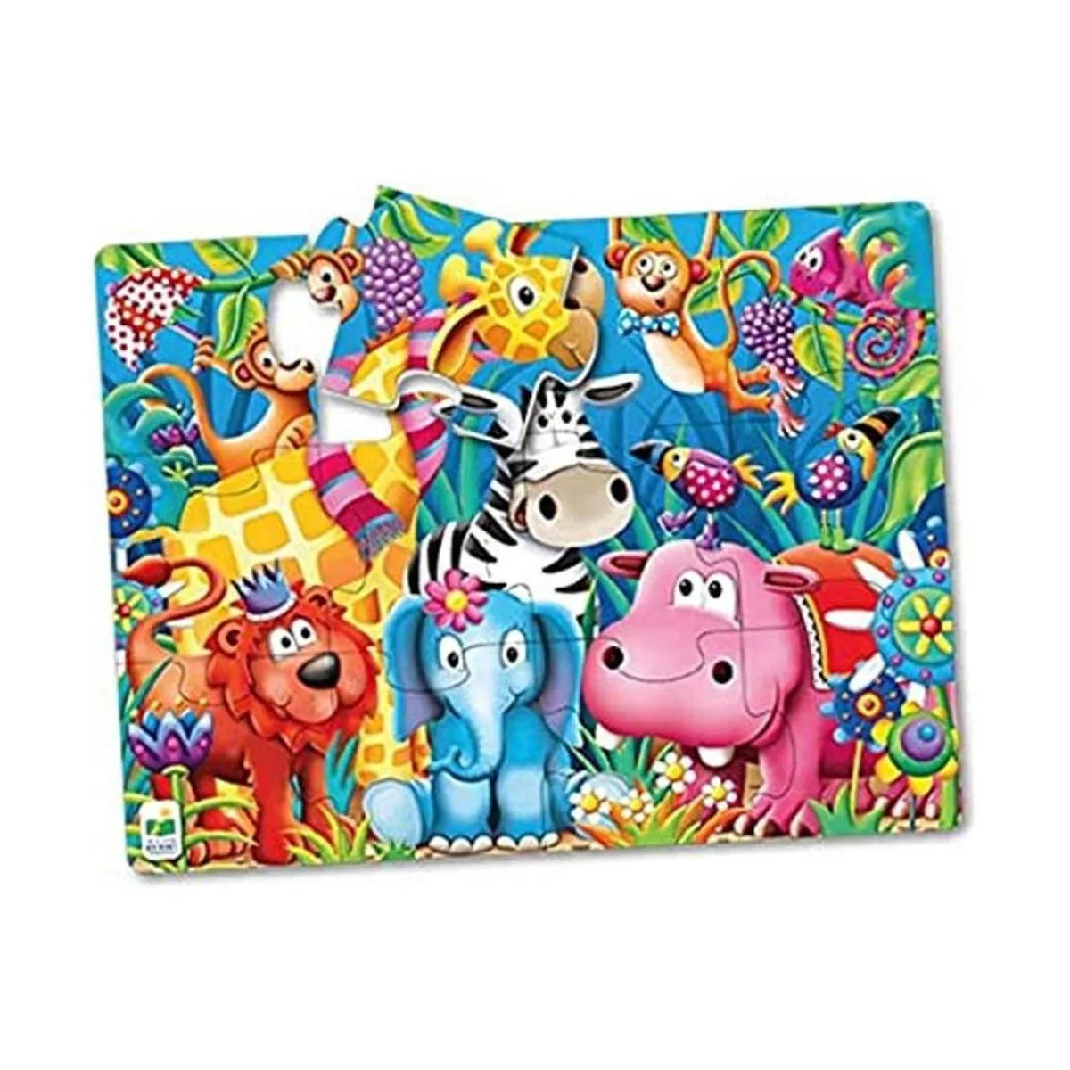 Características clave: este colorido rompecabezas jumbo de 12 piezas ilustrado es perfecto para que las manos pequeñas manipulen y es ideal tanto para niños como para niñas de 2 años en adelante. Diseñado para introducir la resolución de problemas y fomentar las habilidades de lenguaje temprano, este rompecabezas temático de la selva hace que sea divertido alcanzar hitos clave de desarrollo. Duplica la diversión del rompecabezas con una emocionante búsqueda de rompecabezas. Encuentra el león, la cebra, el elefante, la jirafa, el mono y otros amigos del safari para aumentar la diversión interactiva del aprendizaje. Especificaciones: 12 piezas de rompecabezas jumbo hechas de cartón grueso y duradero. El rompecabezas completo mide 24 x 18 pulgadas