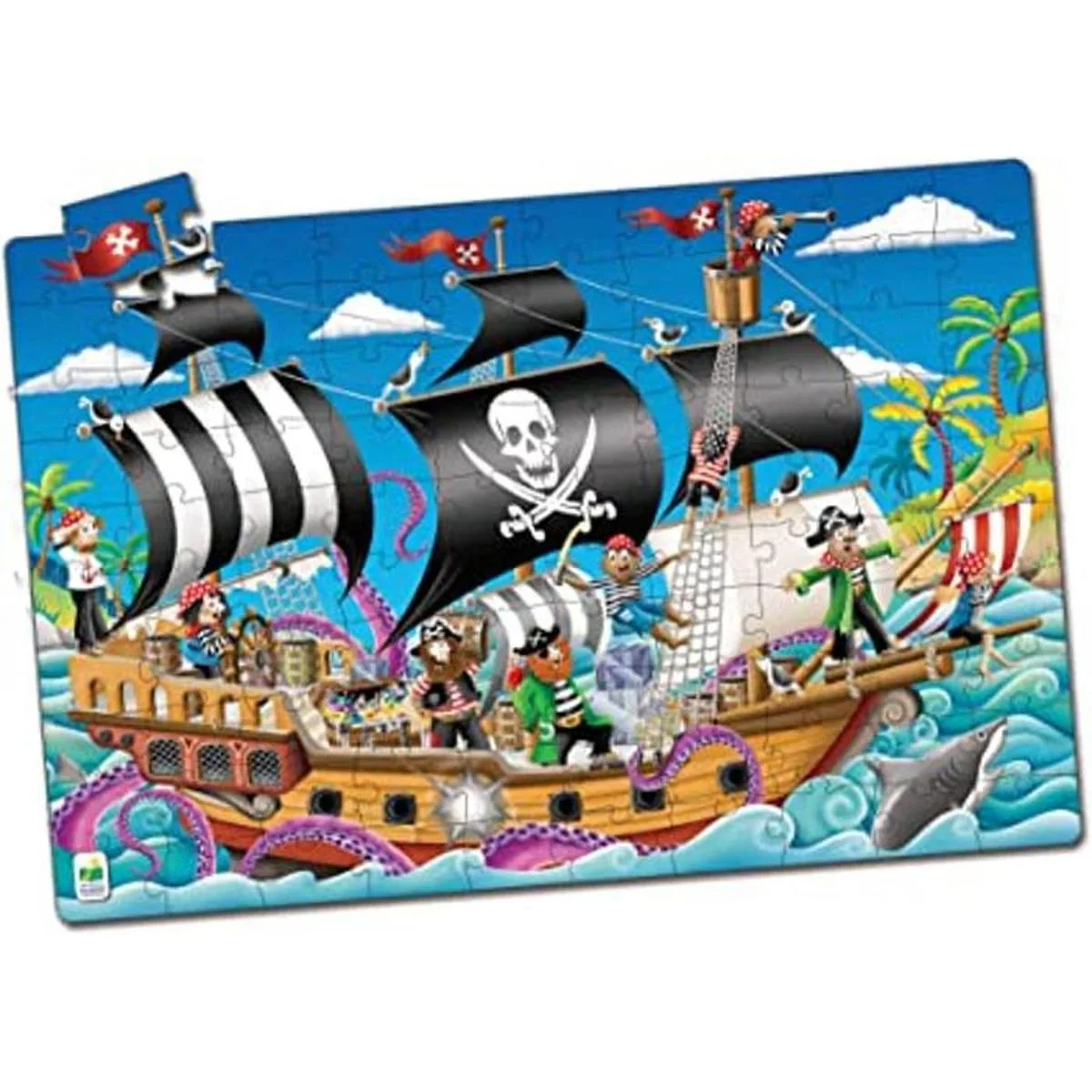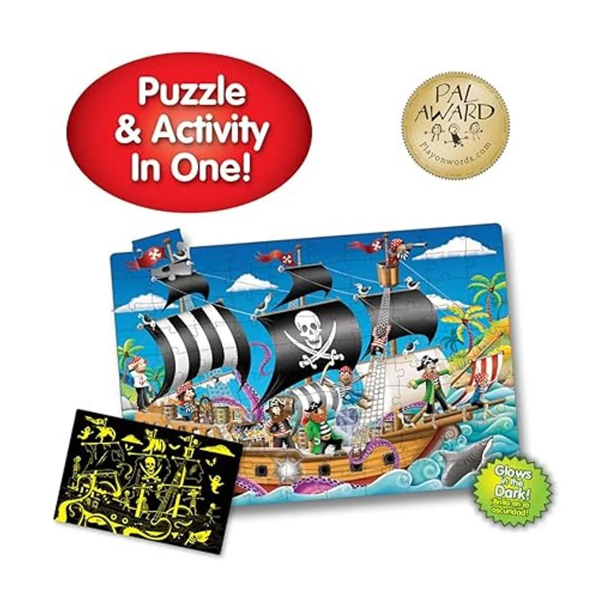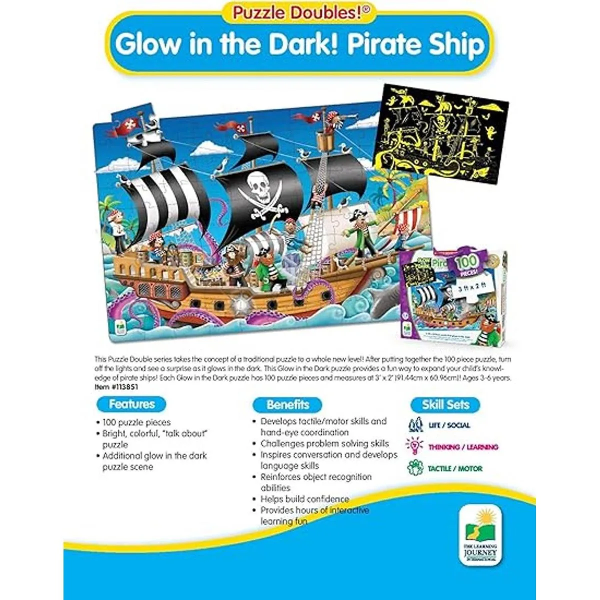 The Learning Journey Rompecabezas doble que brilla en la oscuridad Barco pirata, 100 piezas que brillan en la oscuridad Rompecabezas preescolar 3 x 2 pies Regalos educativos para niños y niñas a partir de 3 años