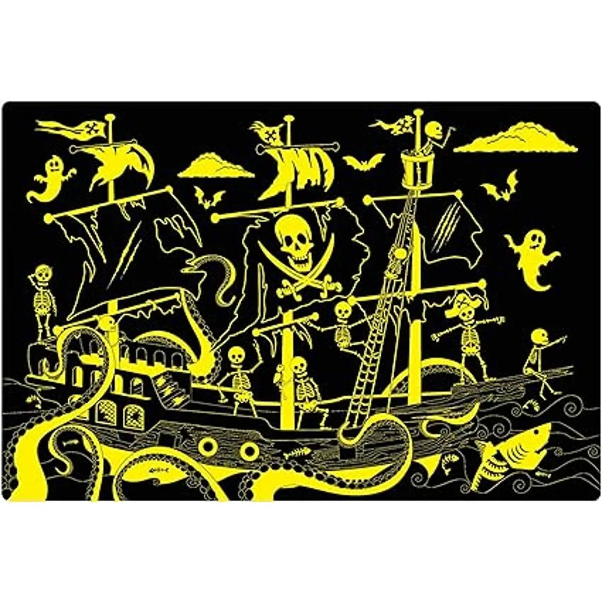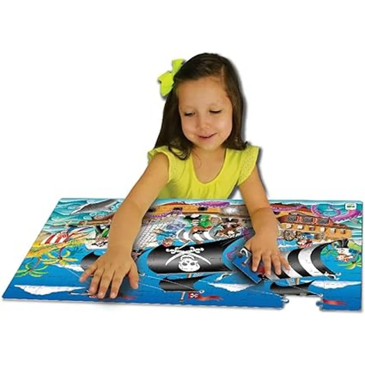 Características clave: este rompecabezas de 100 piezas que brilla en la oscuridad es perfecto para jugar preescolar y es un gran regalo tanto para niños como para niñas a partir de 3 años. Diseñado para fortalecer la resolución de problemas y fomentar las habilidades tempranas del lenguaje y el aprendizaje, este rompecabezas temático pirata hace que sea divertido aprender a través del juego. Duplica la diversión del rompecabezas a medida que cambia la escena cuando más del 30 del rompecabezas brilla en la oscuridad Especificaciones: 100 piezas de rompecabezas que brillan en la oscuridad hechas de cartón grueso y duradero. El rompecabezas completo mide 36 x 24 pulgadas.