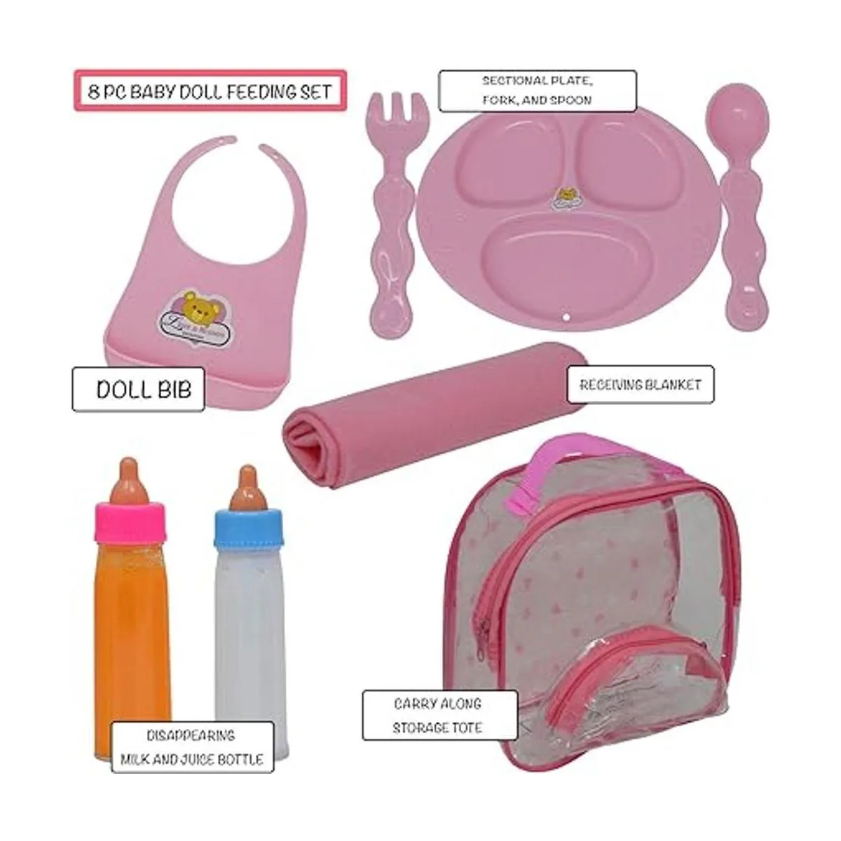 The New York Doll Collection Accesorios para muñecas de bebé, biberones mágicos y juego de alimentación de muñecas en una bolsa, multicolor