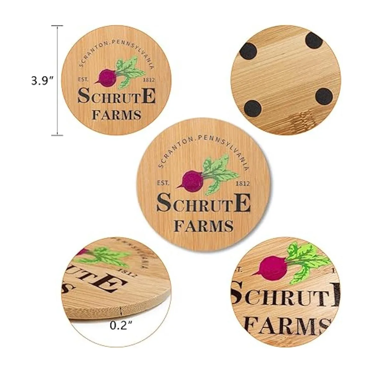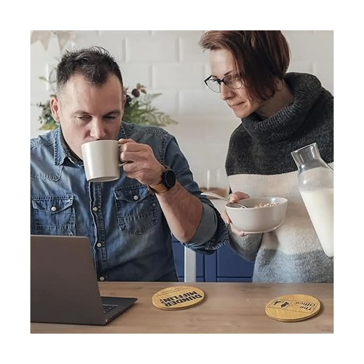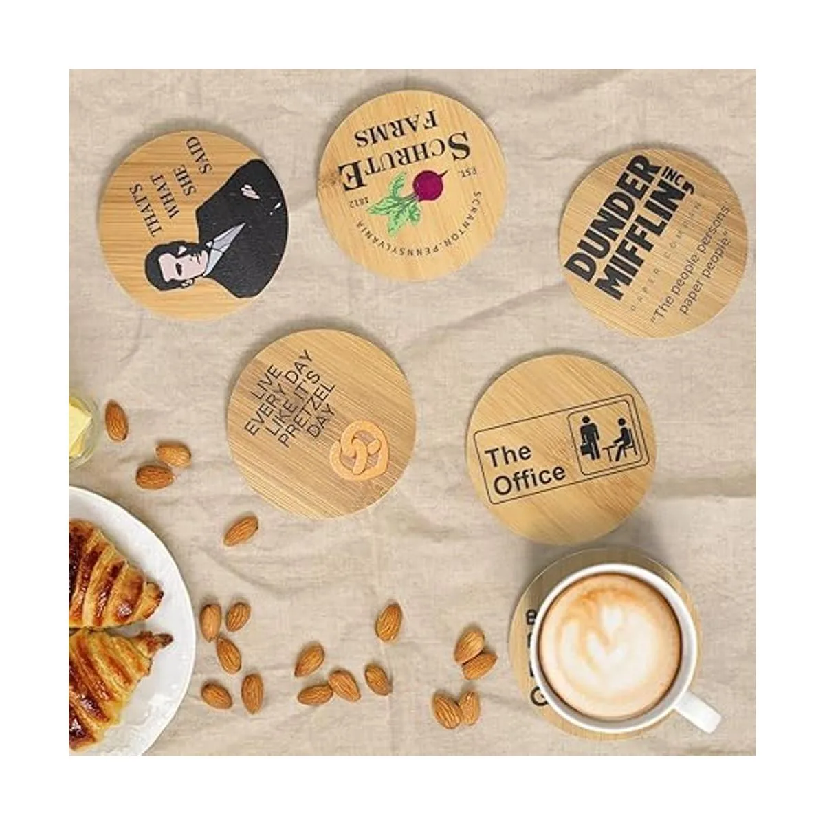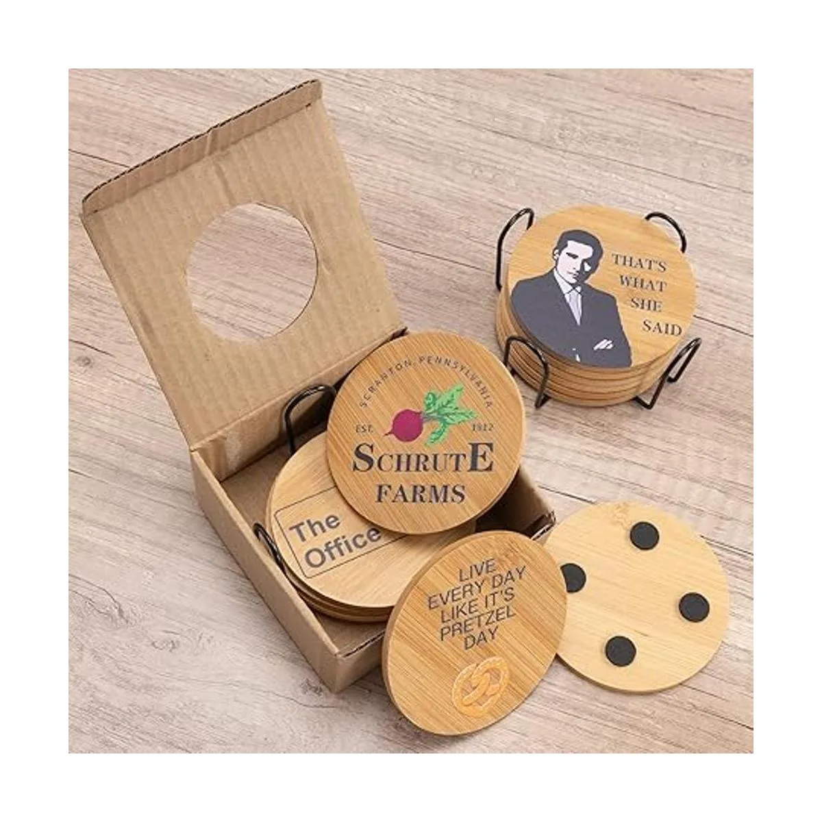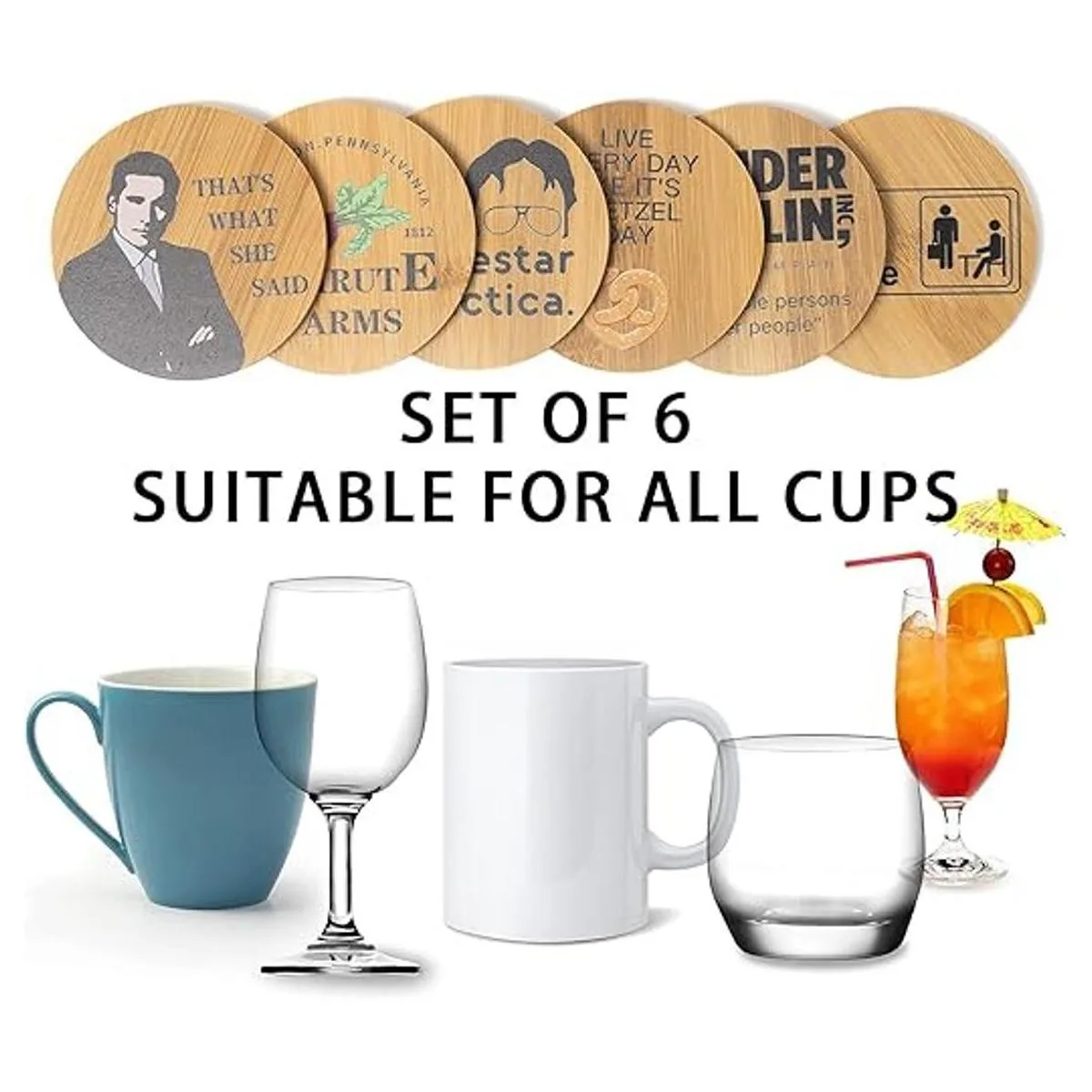 The Office Juego de 6 posavasos de madera de bambú, con temática de oficina, Dunder Mifflin grabado, regalos de programa de televisión para hombres o mujeres posavasos de oficina nuevos