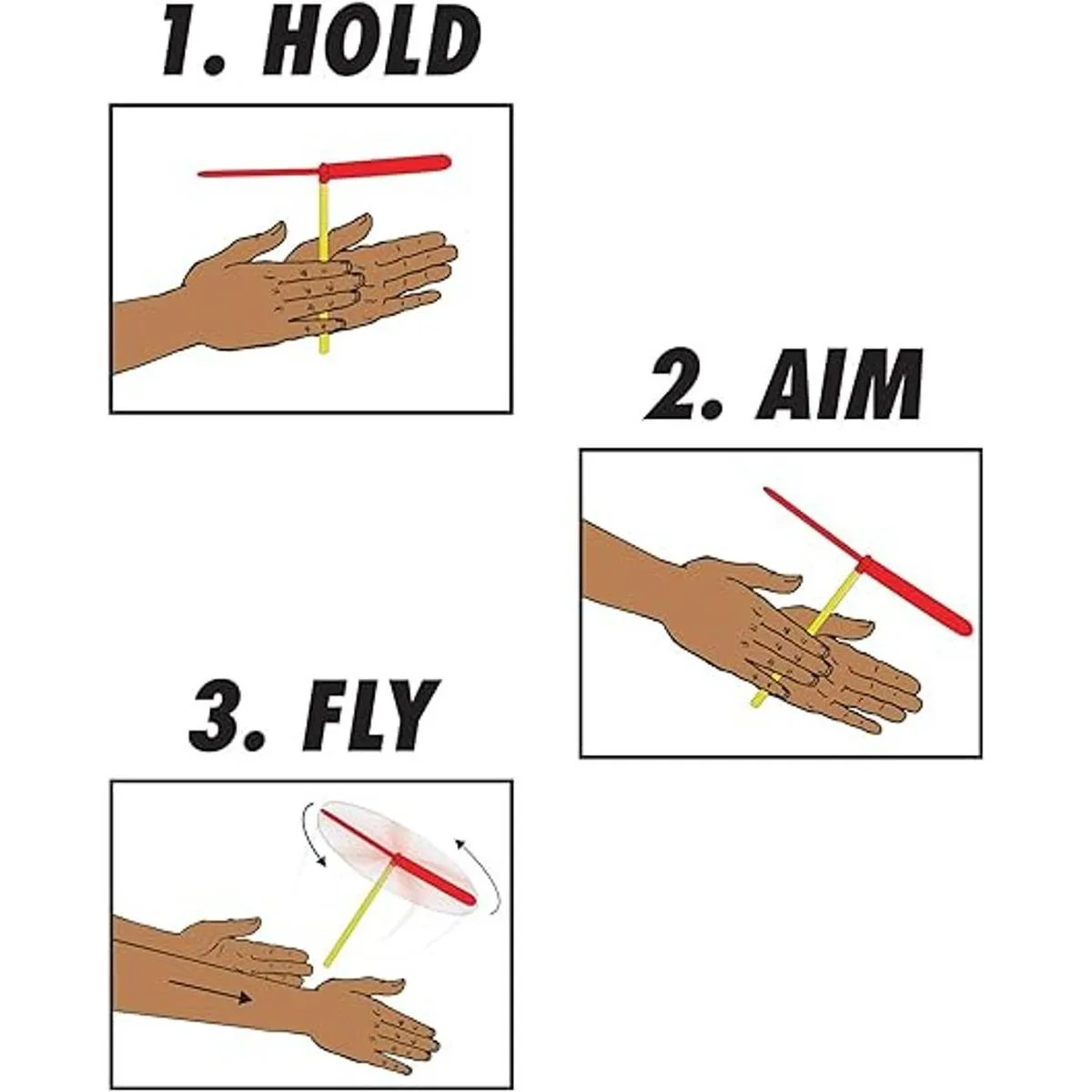 Experimenta la emoción del vuelo: desde tu sala de estar o donde quiera que estés, con este helicóptero giratorio Es divertido para todas las edades Esta hélice duradera y ligera viene en más de 20 colores. El surtido de colores puede variar