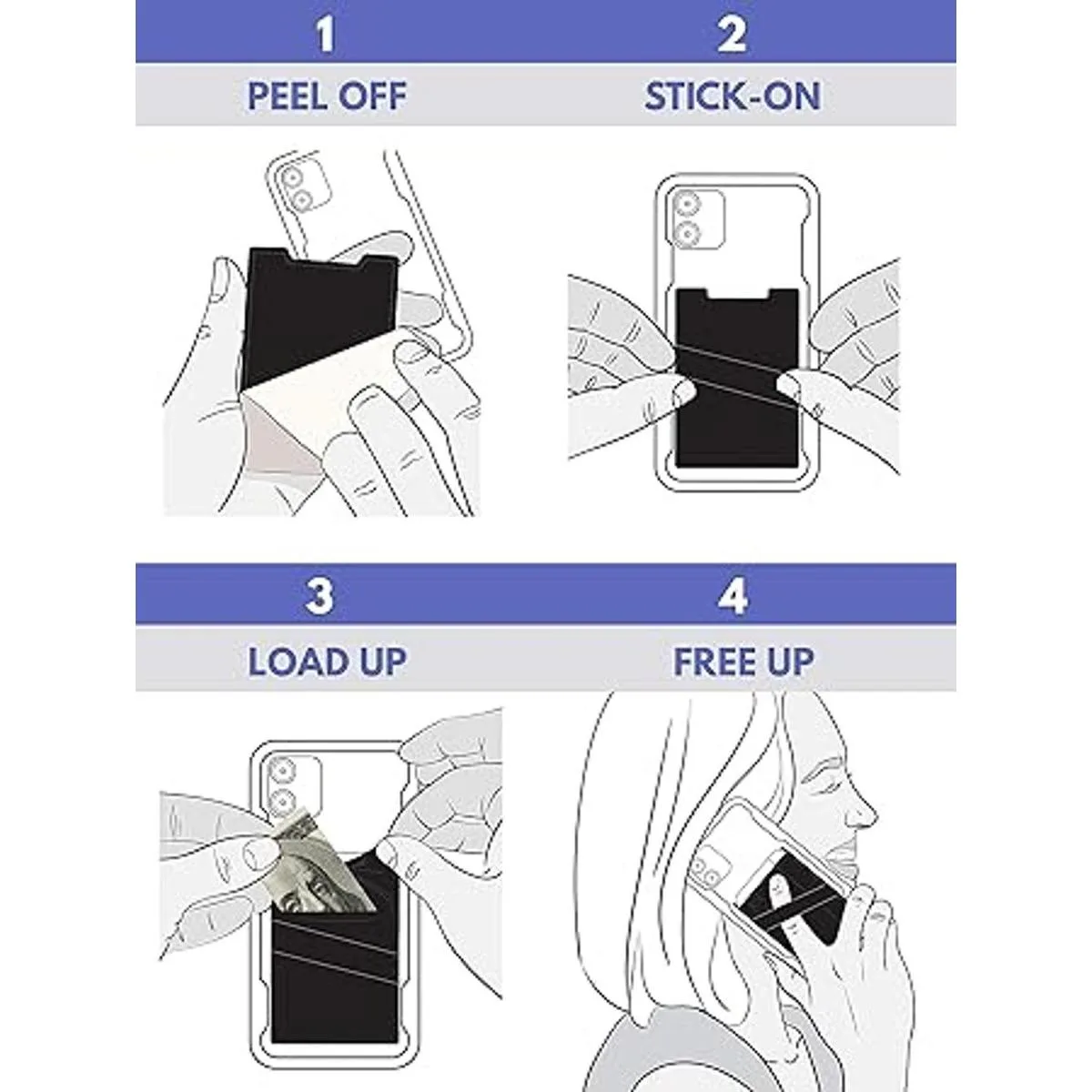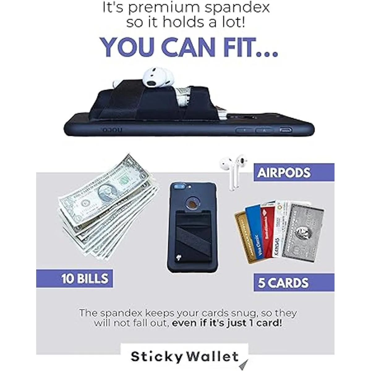 The StickyWallet Tarjetero adhesivo de elastano prémium para cualquier funda, diseño único de doble bolsillo correa para los dedos paquete de 1