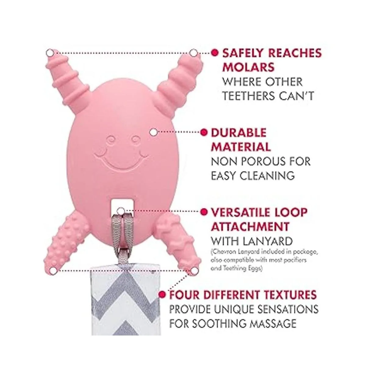 El paquete incluye 3 de nuestros productos más populares para un alivio integral de la dentición: el huevo de dentición para aliviar el dolor en los primeros dientes delanteros, de 3 a 12 meses de edad, el palo de agarre ayuda a las manos más pequeñas a sostener el huevo de dentición y maximiza el sonajero en el interior, y el mago molar para llegar a los dientes y encías traseros, de 6 a 24 meses de edad.