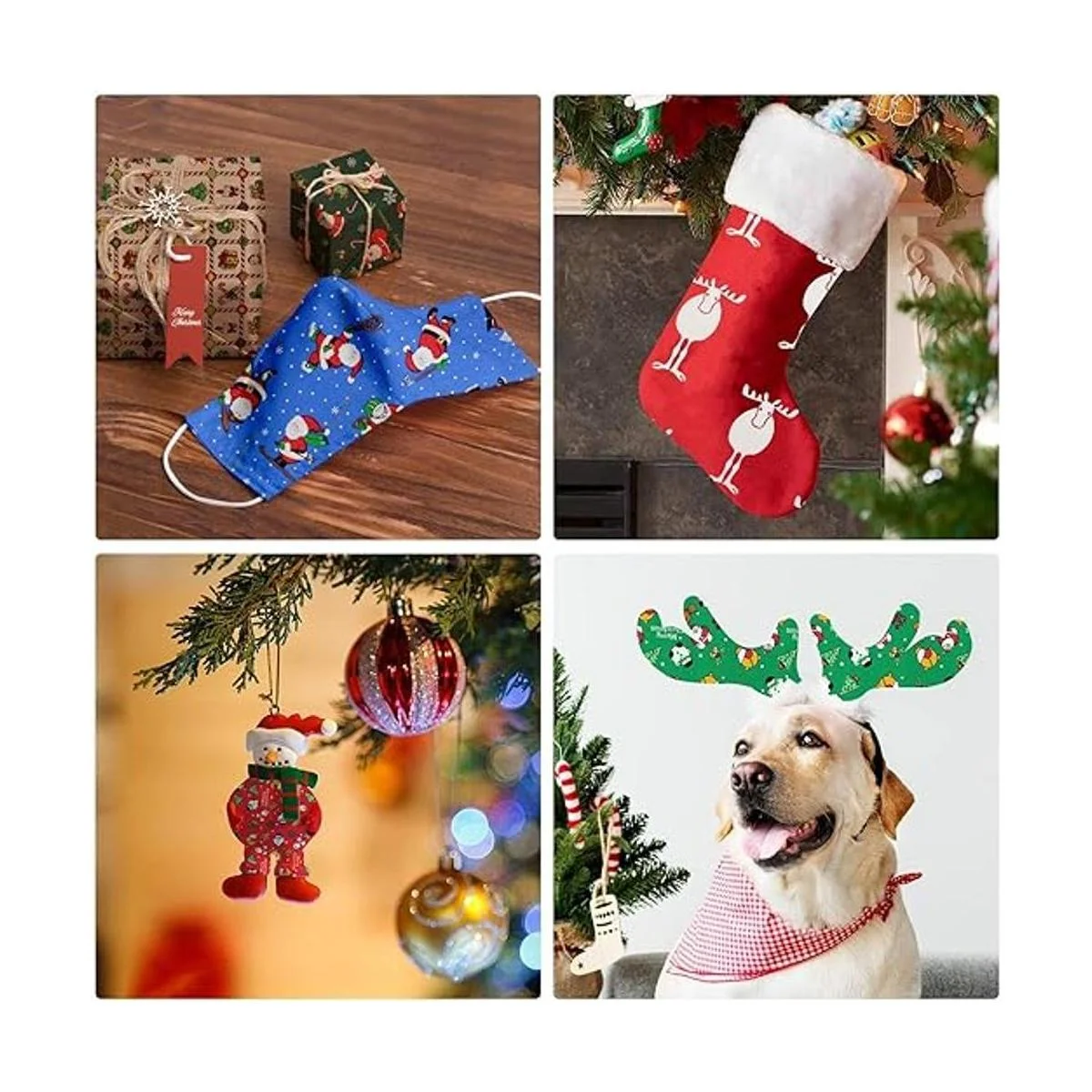 Diseño de patrón de Navidad: la tela de costura de Navidad está impresa con copo de nieve, muñeco de nieve, alce, árbol de Navidad y Papá Noel, etc. Estos elementos clásicos de Navidad te proporcionarán un ambiente festivo a tus manualidades