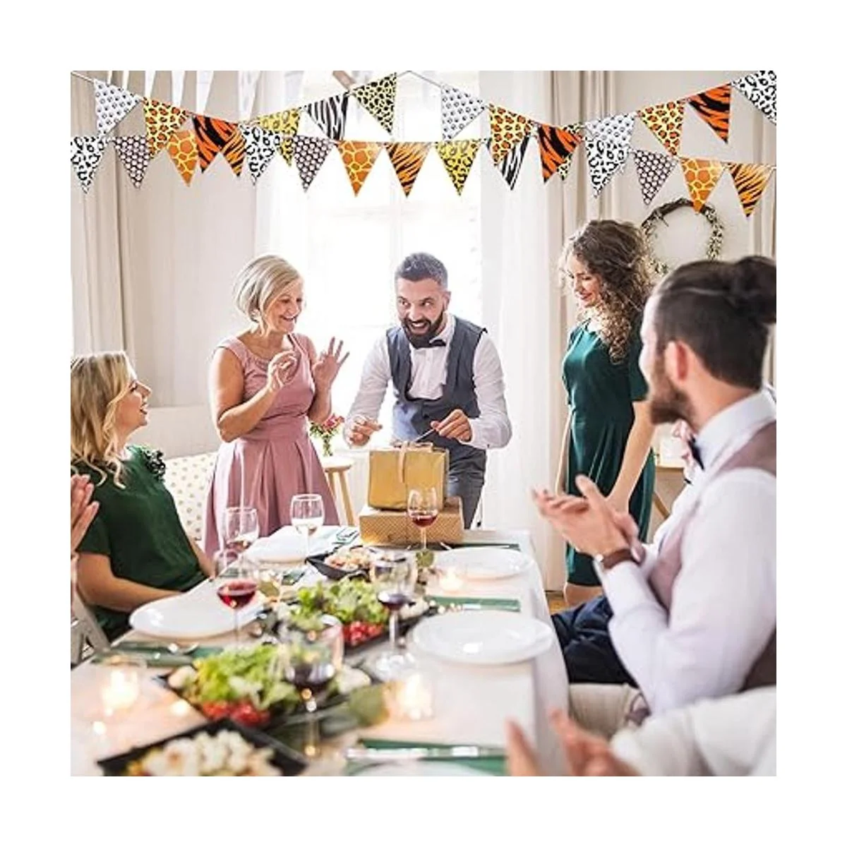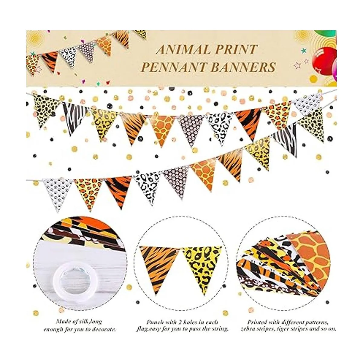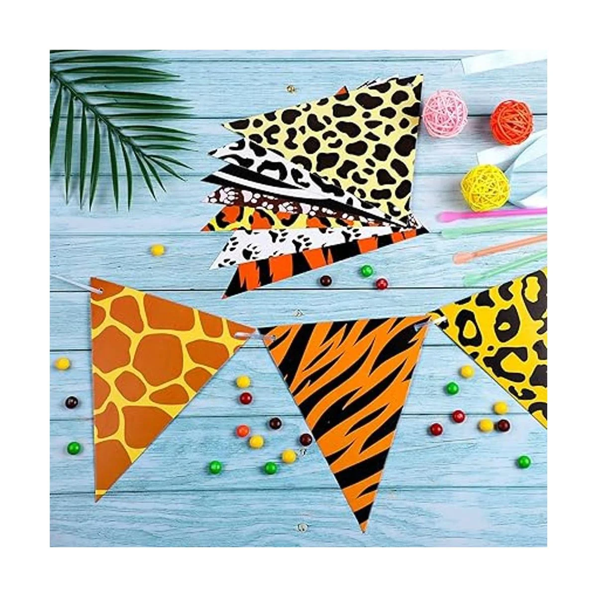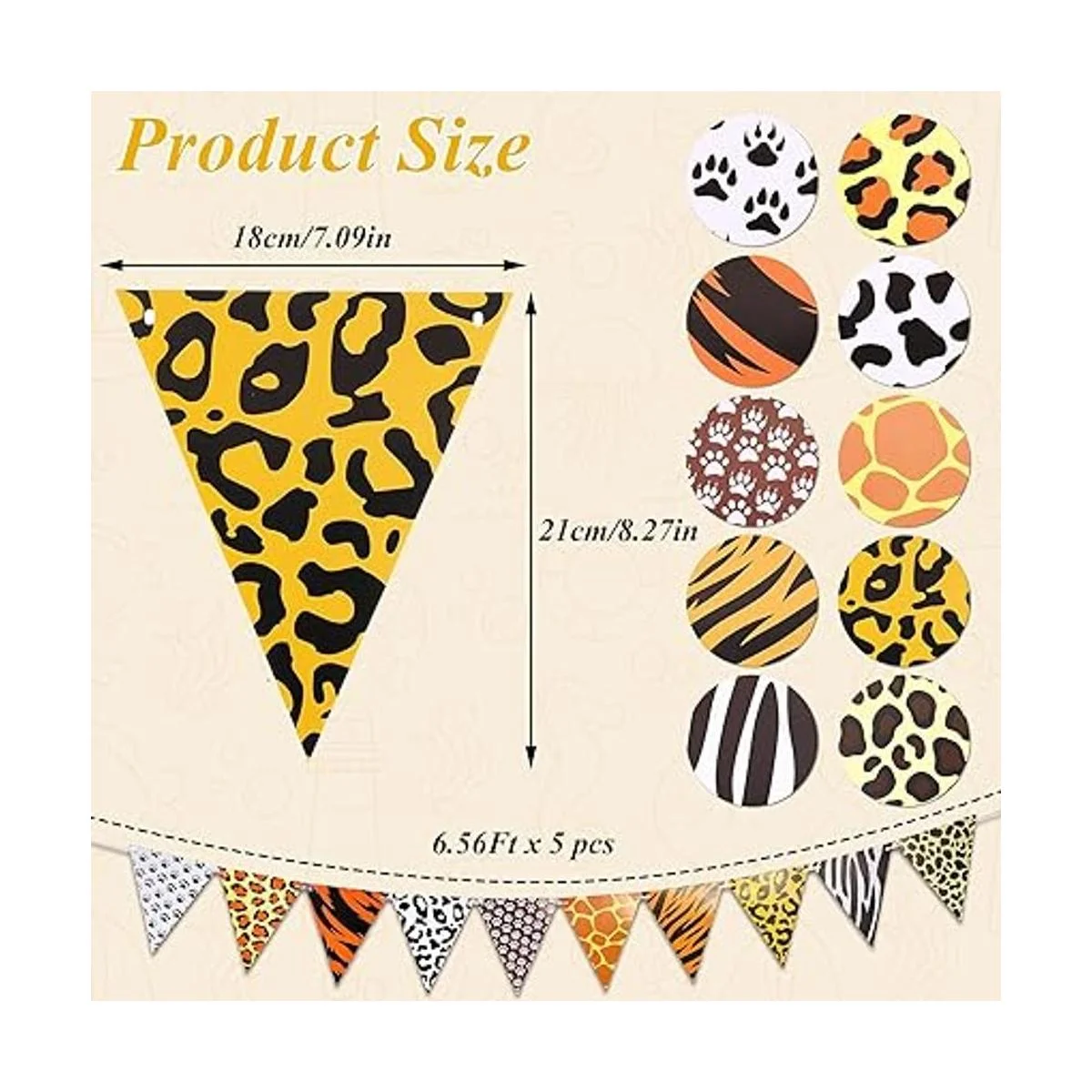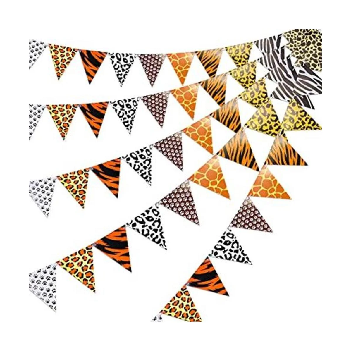 Thenshop 5 piezas de suministros de fiesta temática de selva, banderines con estampado de safari de animales, estampado de animales de la selva, bandera triangular, bandera para fiesta temática de animales, zoológico, selva, safari estilo clásico
