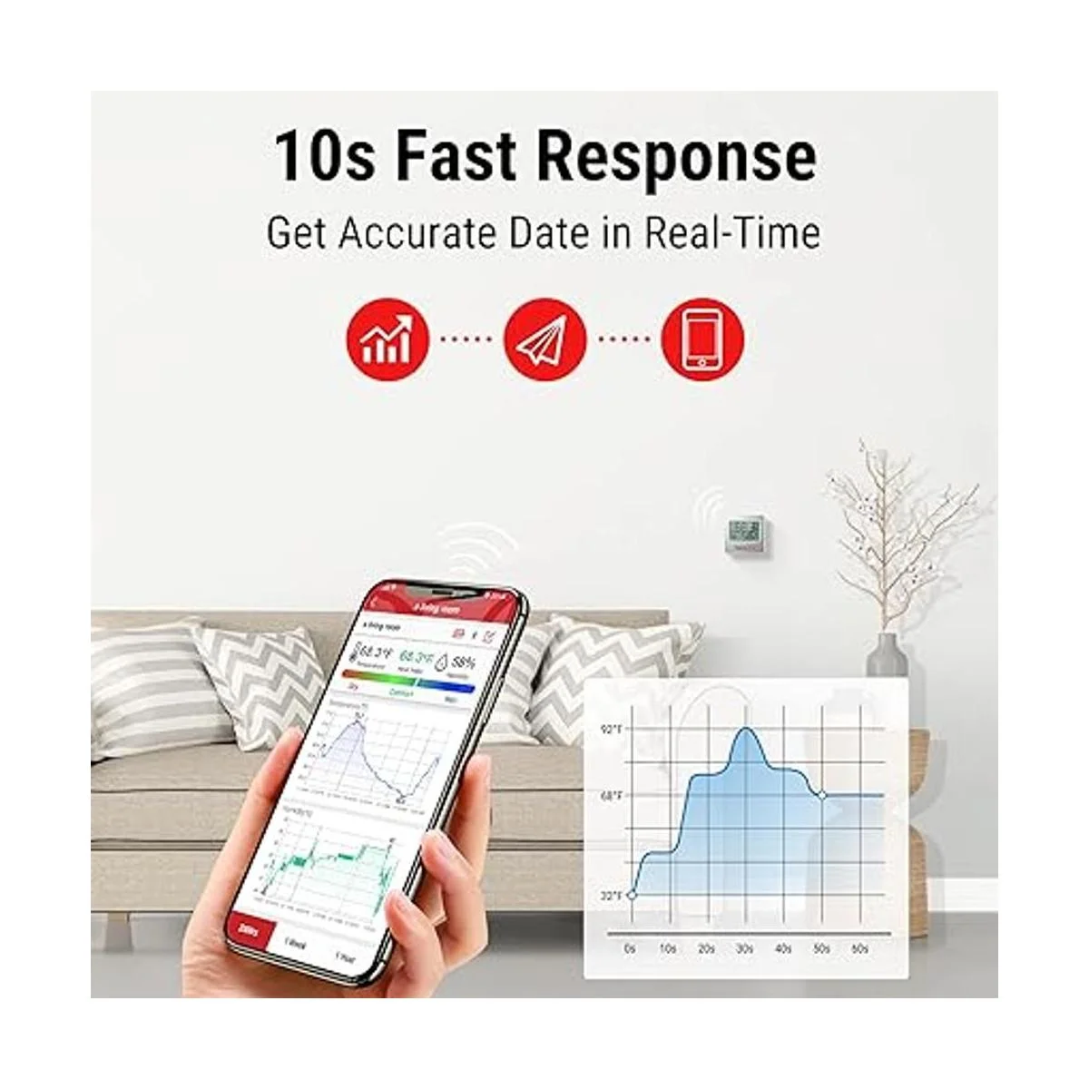 Rango Bluetooth de 260 pies: el humidistato digital hidrómetro contiene una tecnología Bluetooth mejorada para producir un rango estable y fiable de 260 pies sin obstrucciones para garantizar que siempre tendrás una cobertura completa del hogar