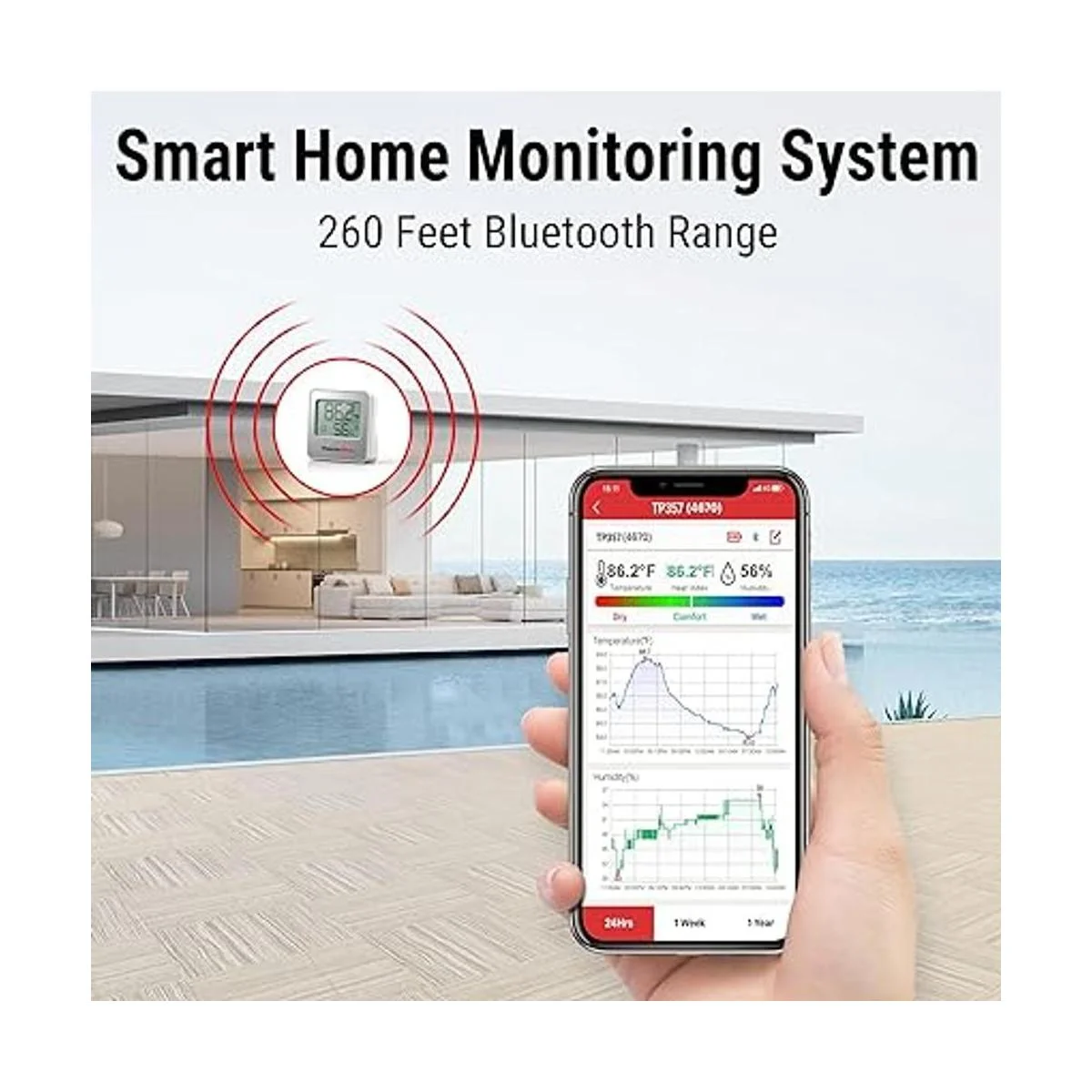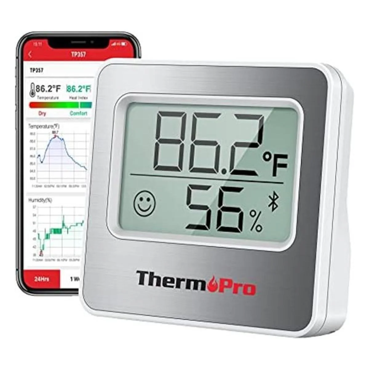 ThermoPro TP357 Termómetro digital para interiores de 260 pies, termómetro Bluetooth con aplicación inteligente, termómetro de habitación con sensor de temperatura y humedad