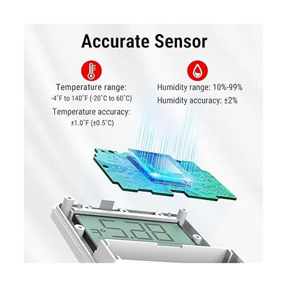 Alta precisión: el monitor de humedad de temperatura con sensor de temperatura inteligente es altamente preciso tanto para lecturas de temperatura como de humedad 1 Fahrenheit/Celsius y 2 RH
