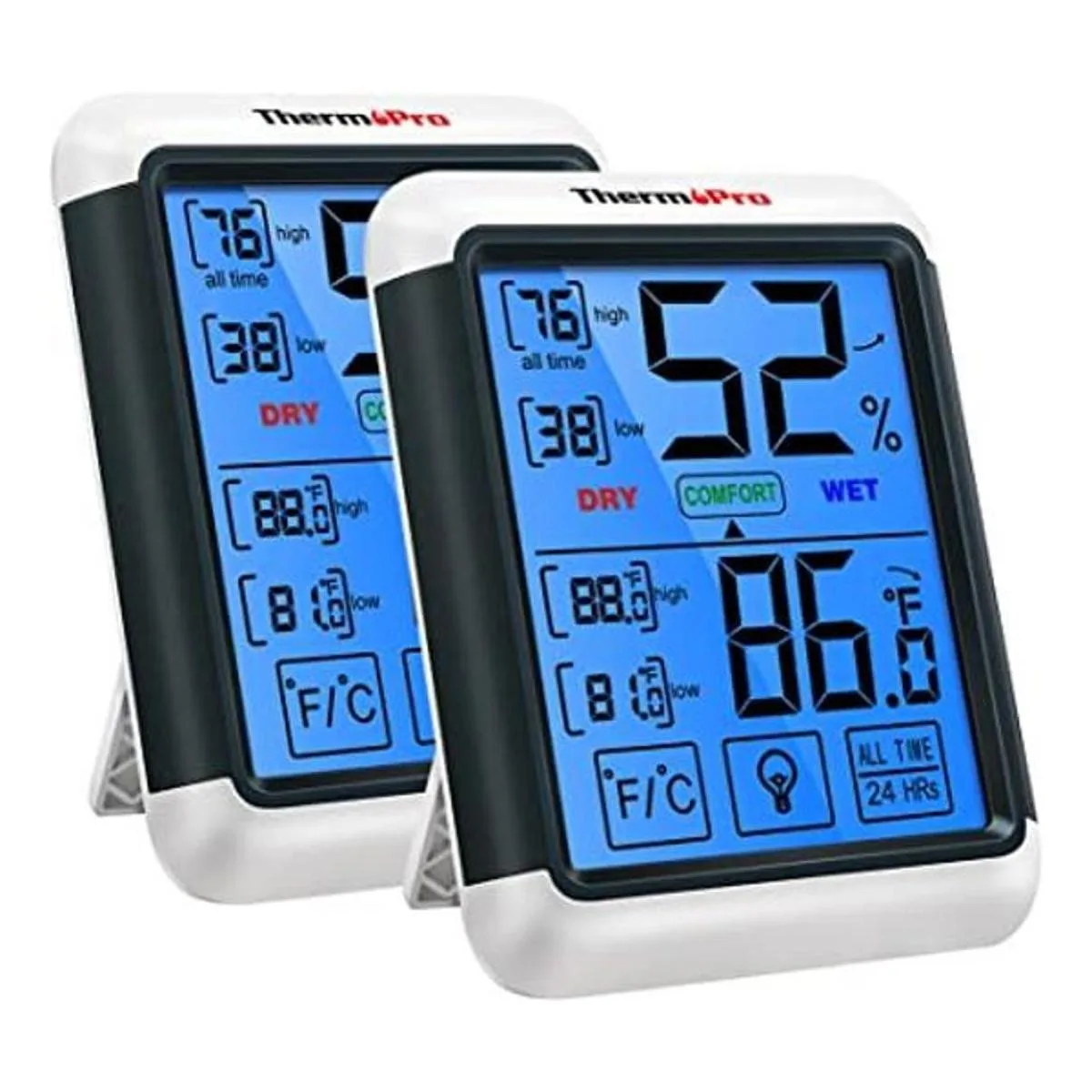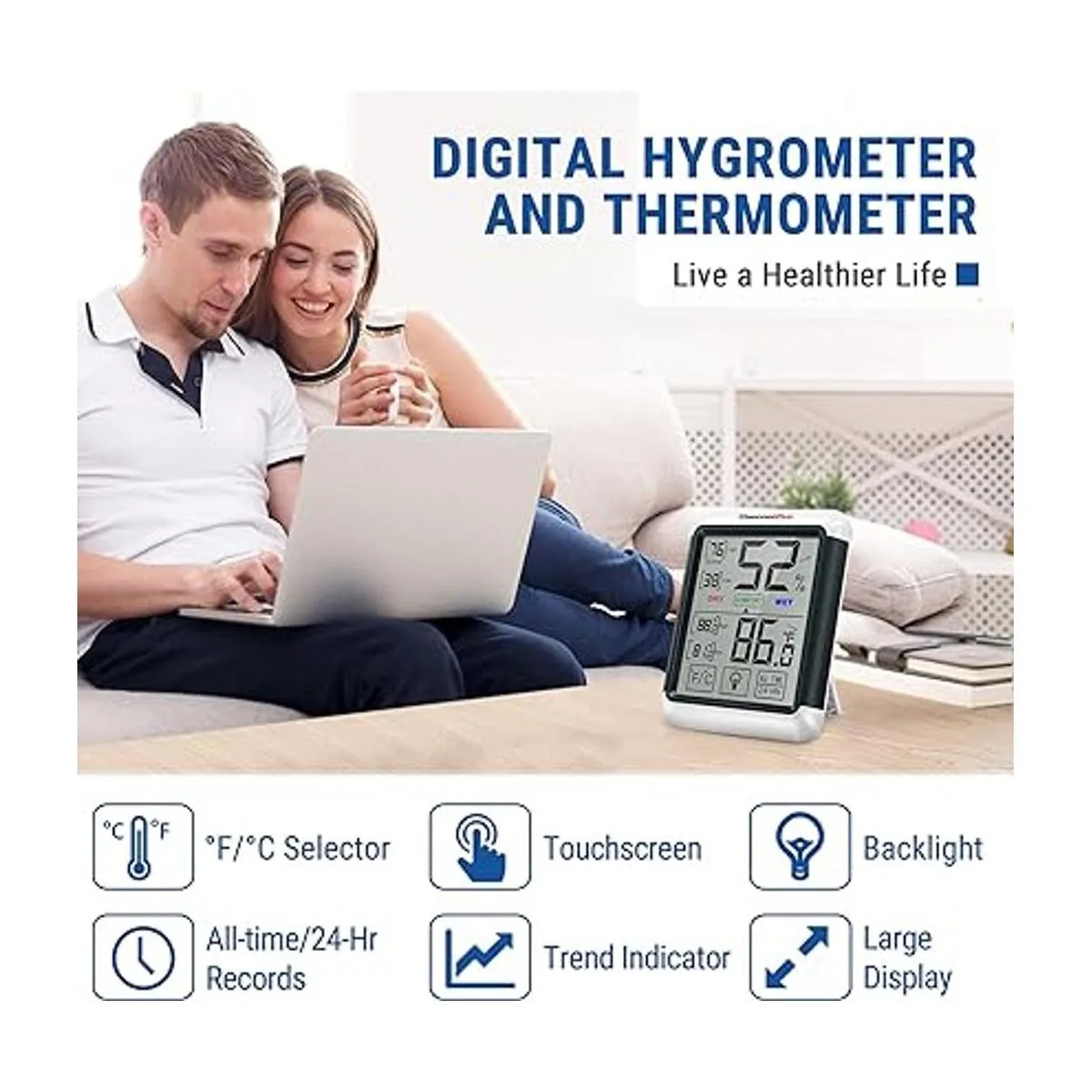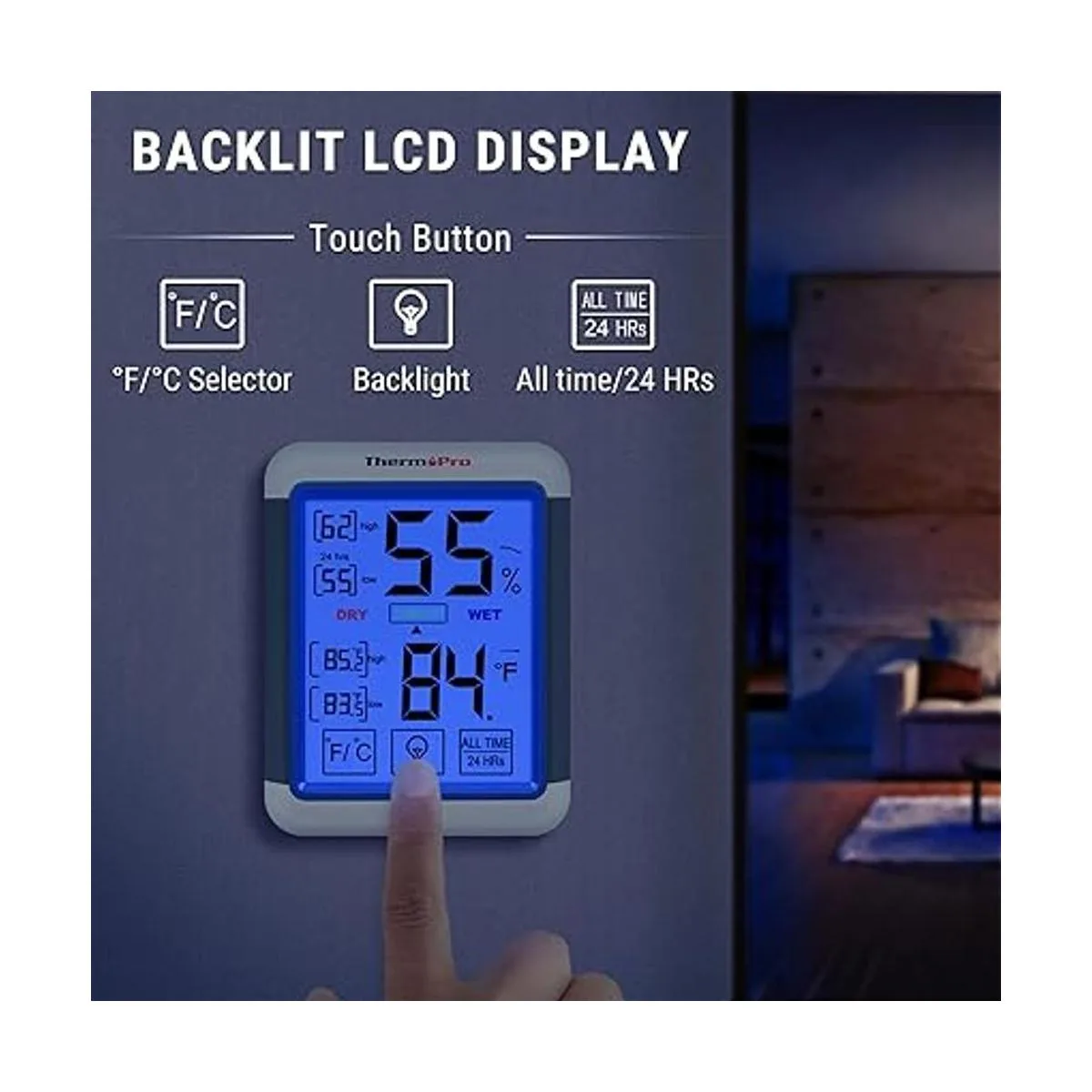 ThermoPro TP55 2 piezas higrómetro digital para interiores, medidor de humedad con pantalla táctil grande y monitor de humedad de temperatura de retroiluminación