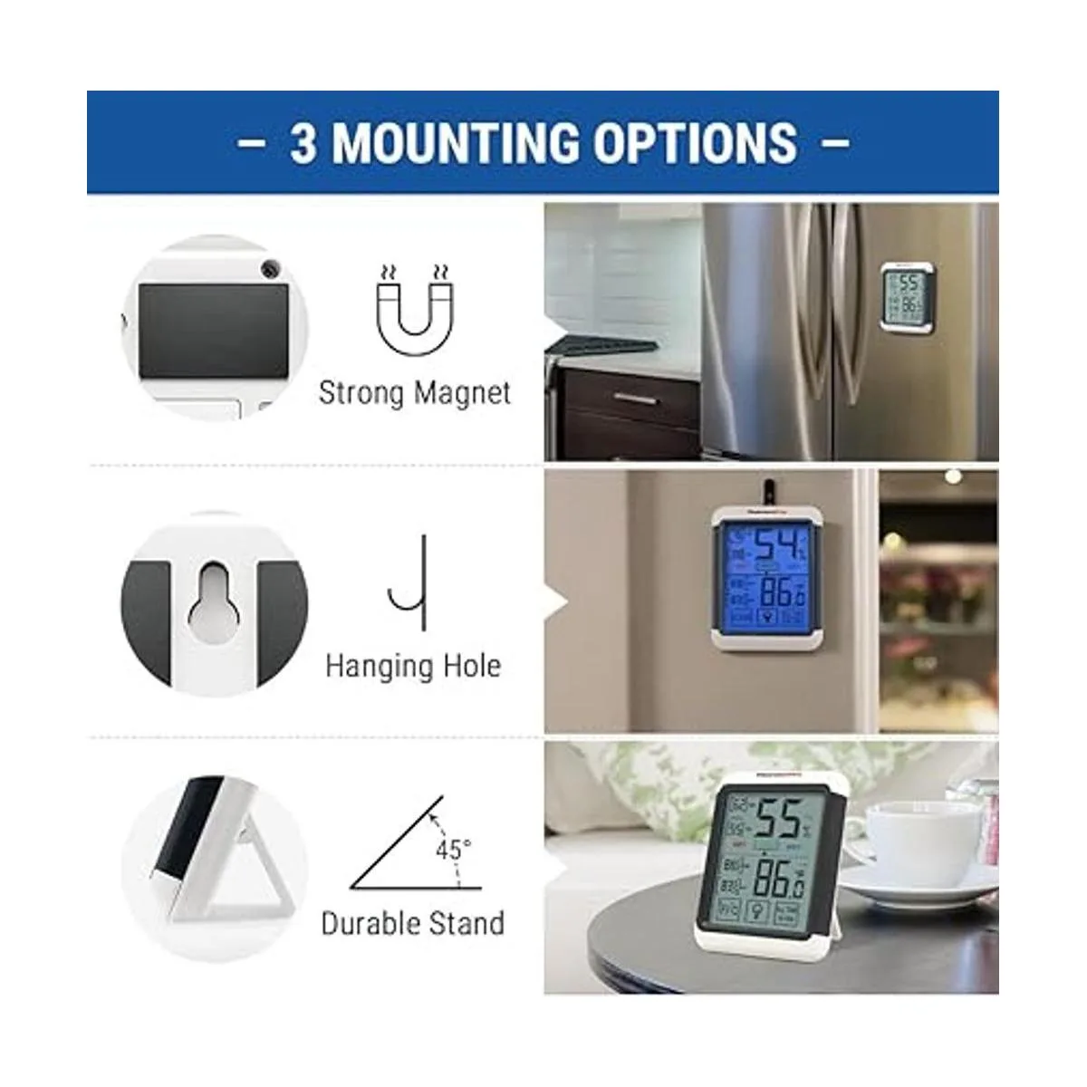 Múltiples opciones de colocación: el termómetro de pared interior cuenta con soporte de mesa, soporte de pared e imán integrado que permite que se utilice en cualquier tipo de habitación; F/C seleccionable; alimentado por 2 pilas AAA incluidas