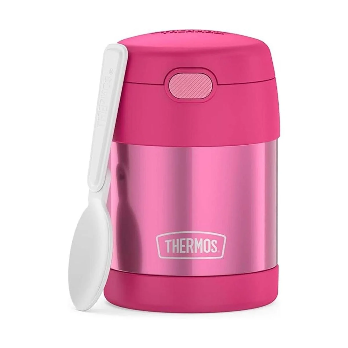 Thermos Tarro de comida FUNTAINER para niños aislado al vacío de acero inoxidable de 10 onzas, con cuchara plegable, rosa