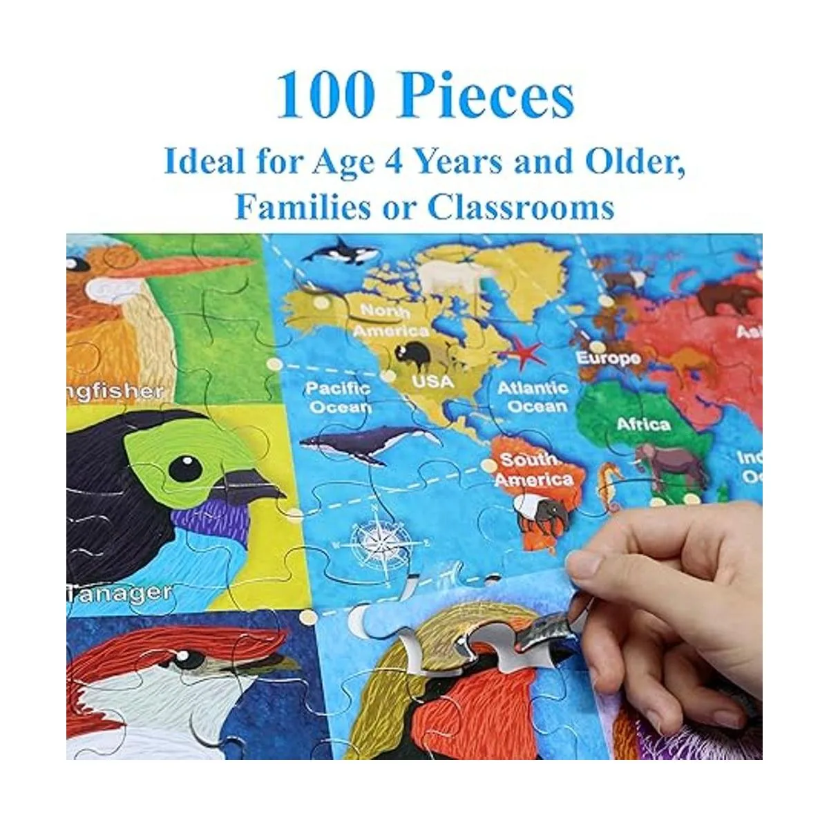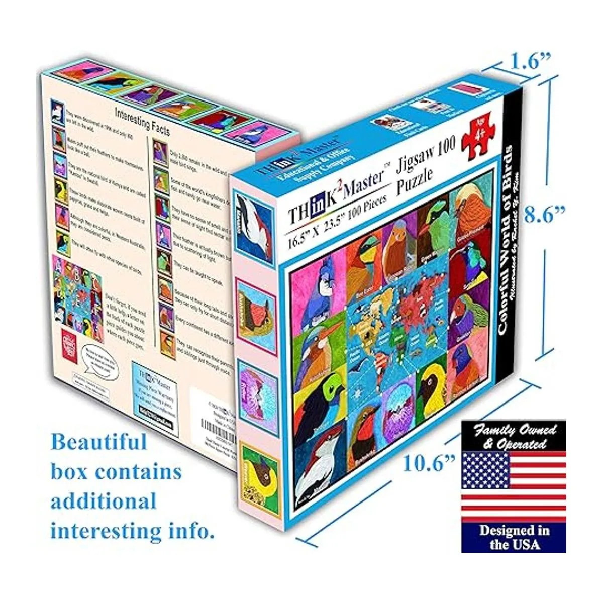 Think2Master Colorido mapa mundial de pájaros, rompecabezas de 100 piezas, divertido juguete educativo para niños, escuela y familias. Ilustración de Rachel Kim. Gran regalo para niños y niñas de 4 a 8 años. Tamaño 23.4 x 16.5 pulgadas