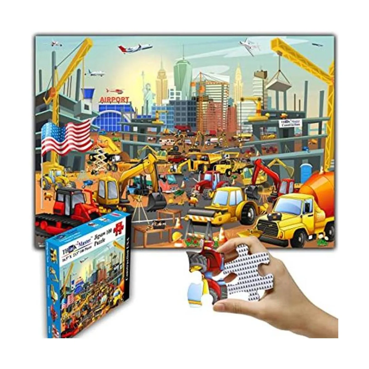 Think2Master Construcción en la ciudad de Nueva York, Estados Unidos, rompecabezas de 100 piezas divertido juguete educativo para niños, escuela y familias. Gran regalo para niños y niñas a partir de 4 años para estimular el aprendizaje. Tamaño 23.4 x 16.5 pulgadas