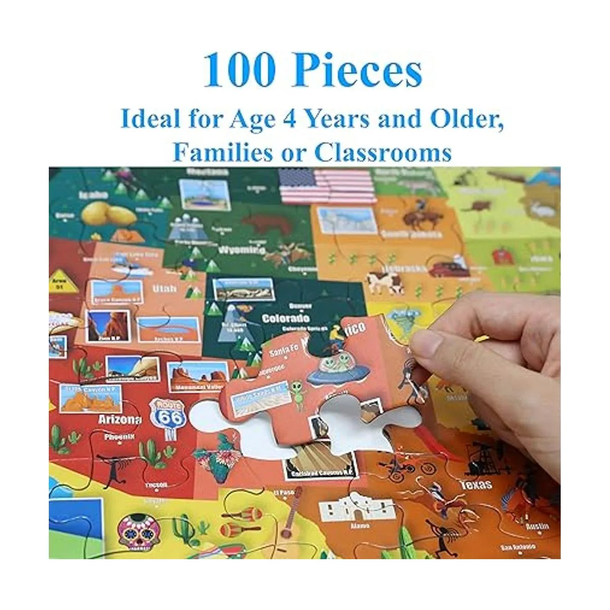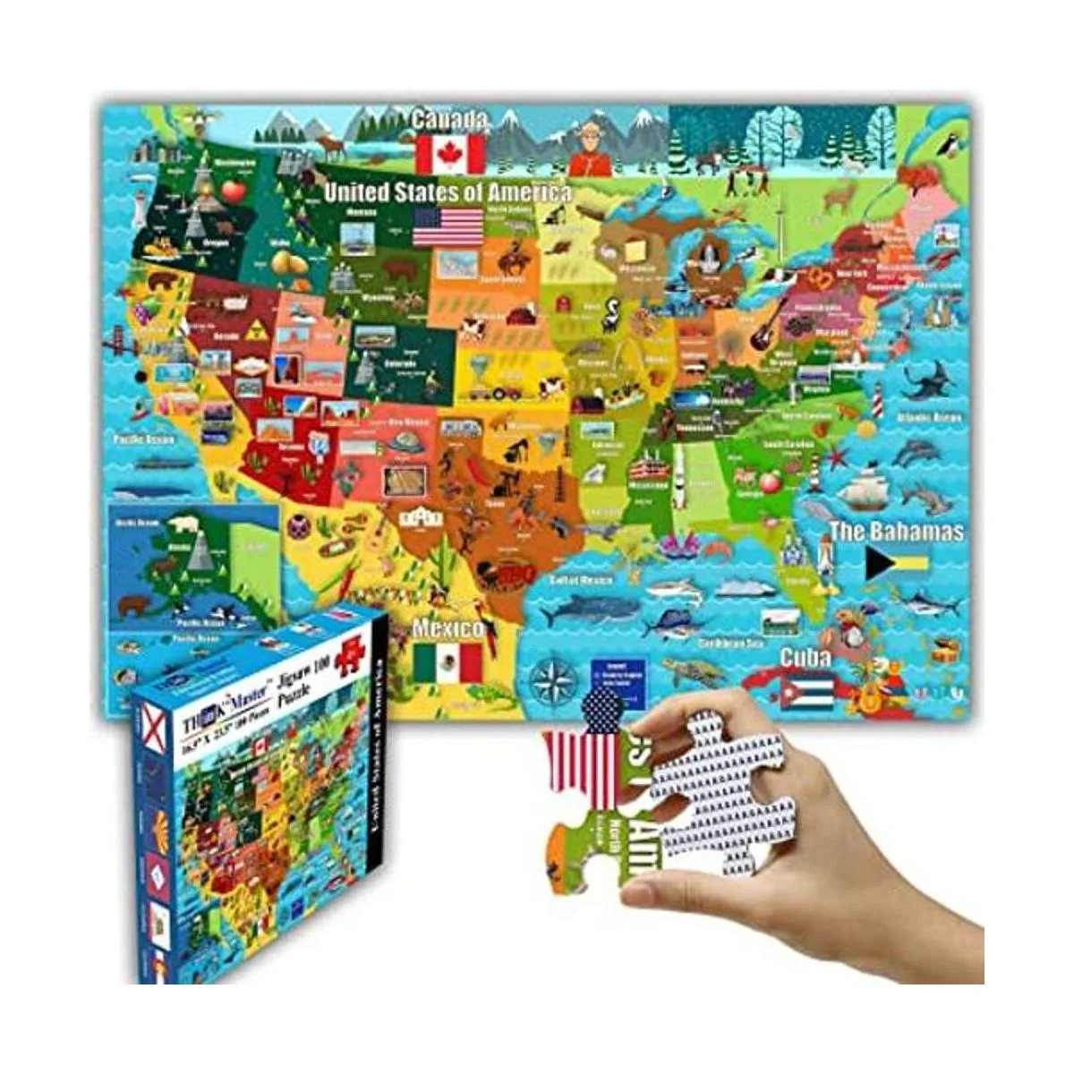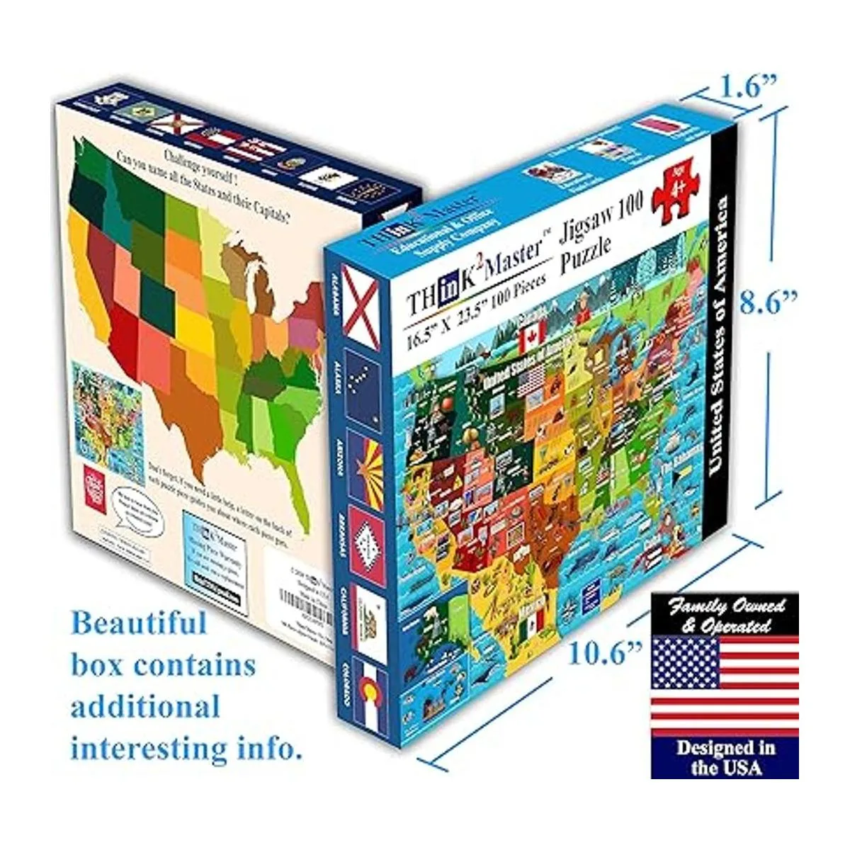 Think2Master Rompecabezas colorido de 100 piezas de mapa de Estados Unidos divertido juguete educativo para niños, escuela y familias. Gran regalo para niños y niñas de 4 a 8 años para estimular el aprendizaje de Estados Unidos. Tamaño 23.4 x 16.5 pulgadas