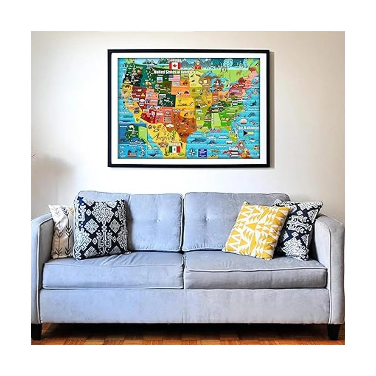 Educativo: gran rompecabezas colorido para estimular los intereses de los niños 3, 2, 1 grado, jardín de infantes, preK en la geografía de Estados Unidos. Es una forma divertida para que los niños aprendan y memorizen todos los estados y sus capitales. Cada estado es de color único y decorado. Los estudiantes pueden aprender sobre los Estados Unidos, incluyendo las cordilleras y los grandes lagos. Los monumentos importantes y las vistas turísticas como Yosemite, Gran Cañón, Yellowstone, Monte Rushmore y Estatua de la Libertad están muy bien representados. Ciudades y actividades importantes y también mostradas.