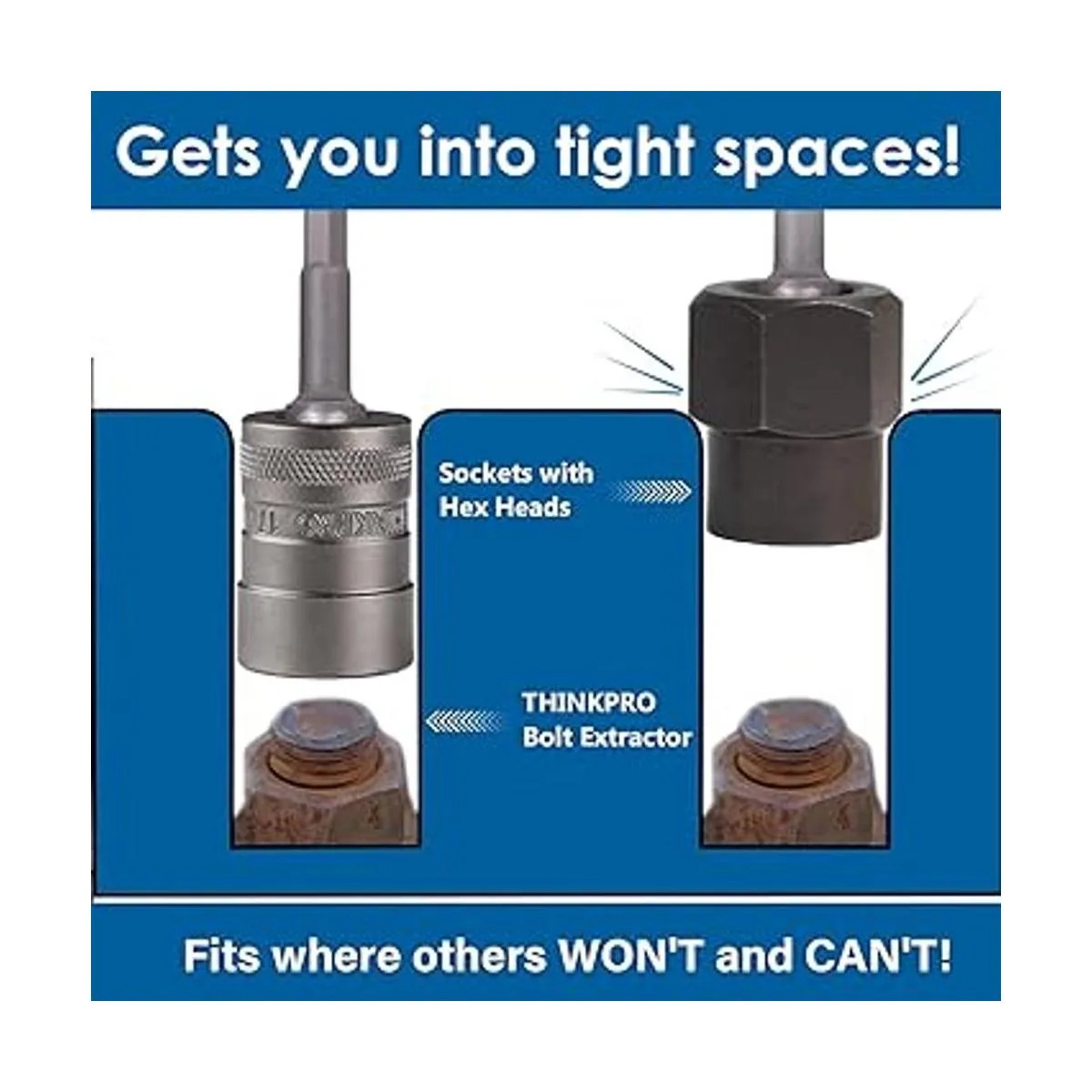 Acero CRMO: la última versión extendida de la funda de extracción de grado de impacto THINKPRO de 0.5 in está mecanizada de acero al cromo molibdeno de alta dureza. Cada removedor de pernos y tuercas está diseñado con precisión para que puedas seguir trabajando en tus proyectos más difíciles. Te lleva a espacios reducidos Se adapta donde otros no lo hacen y no pueden