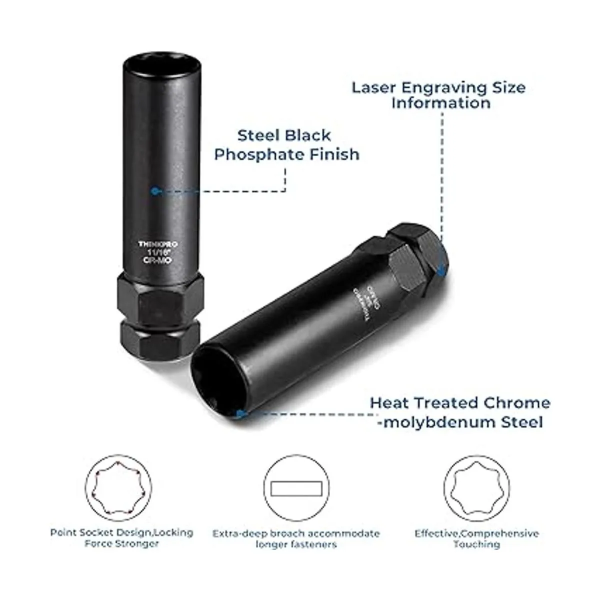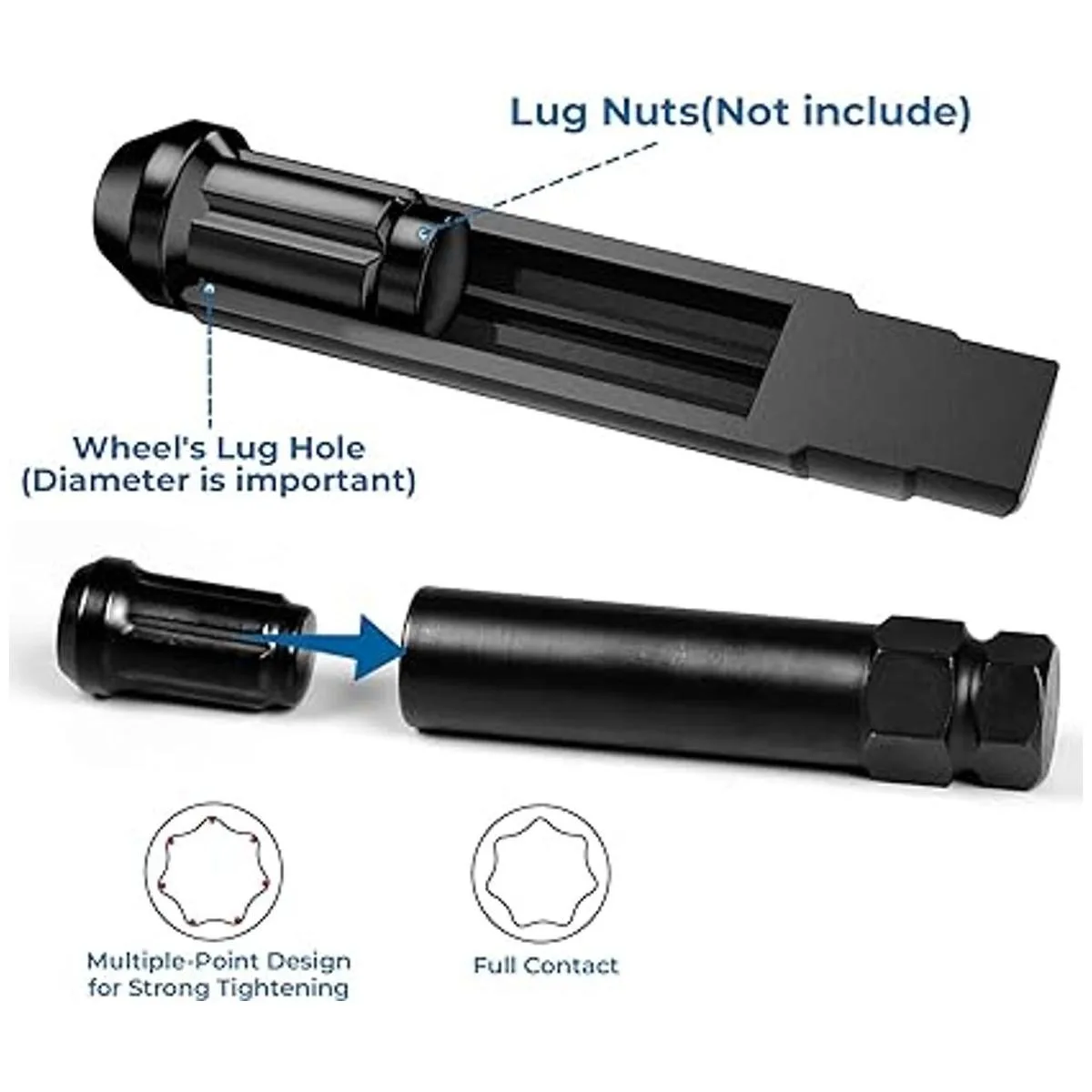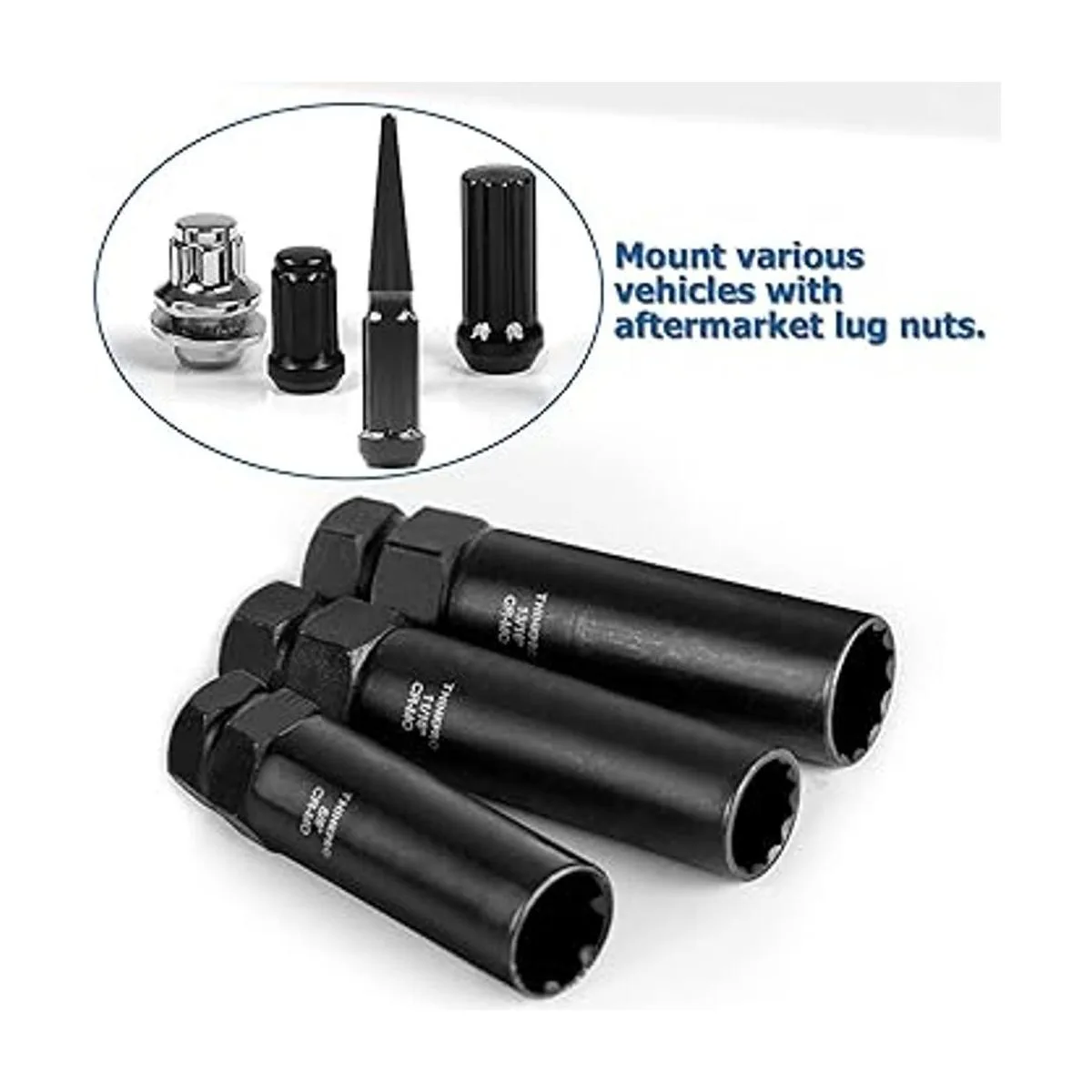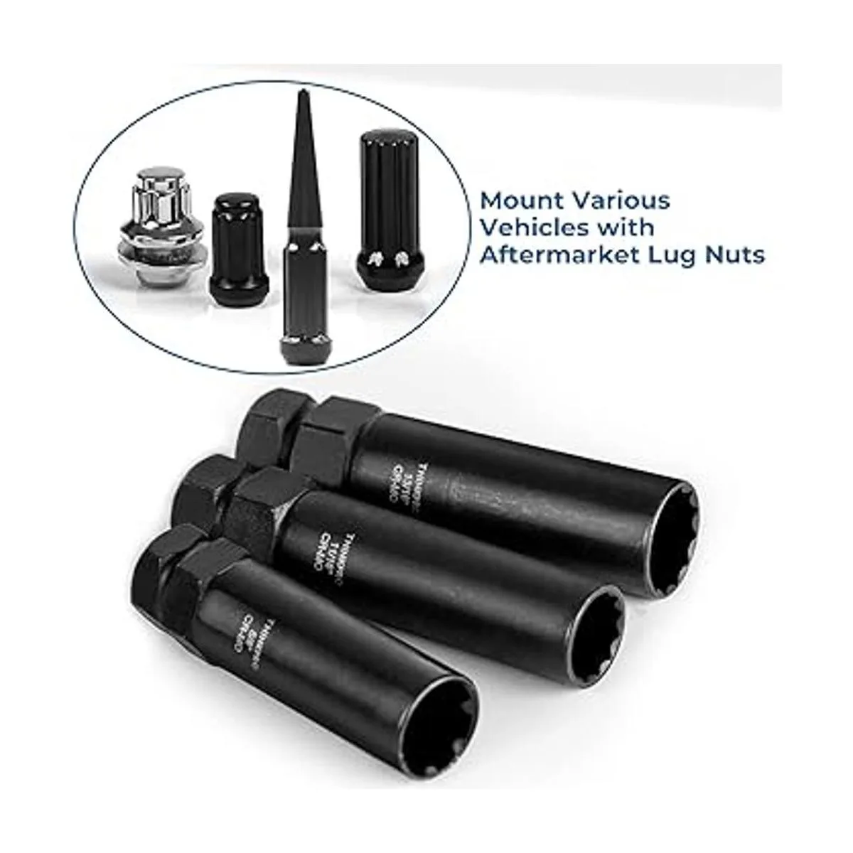 CRMO de alta calidad: juego de llaves maestras de tuerca de bloqueo resistente, pared delgada hecha de acero al cromo molibdeno tratado térmicamente, tratamiento de oxidación negra, anticorrosión y antioxidante, duradero y de larga vida útil, incluso por vida. Y evita rasguños y arañazos al quitar ruedas y neumáticos.
