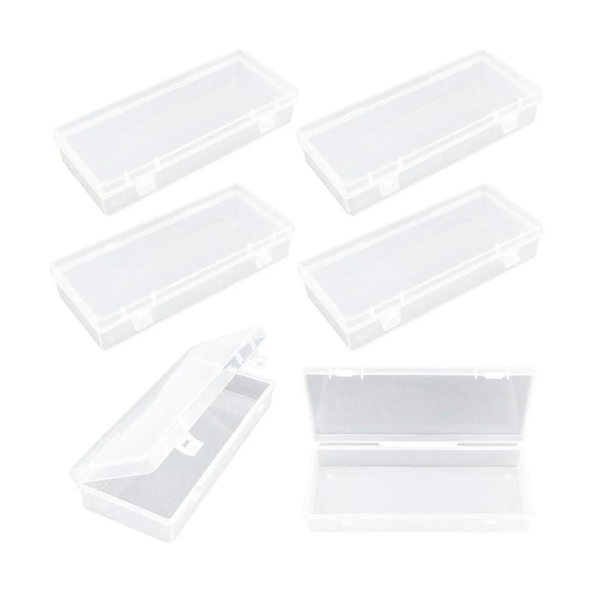 Thintinick Paquete de 6 recipientes rectangulares de plástico transparente con tapa con bisagras para cuentas y otros artículos pequeños de manualidades 6.1 x 2.56 x 1.18 pulgadas