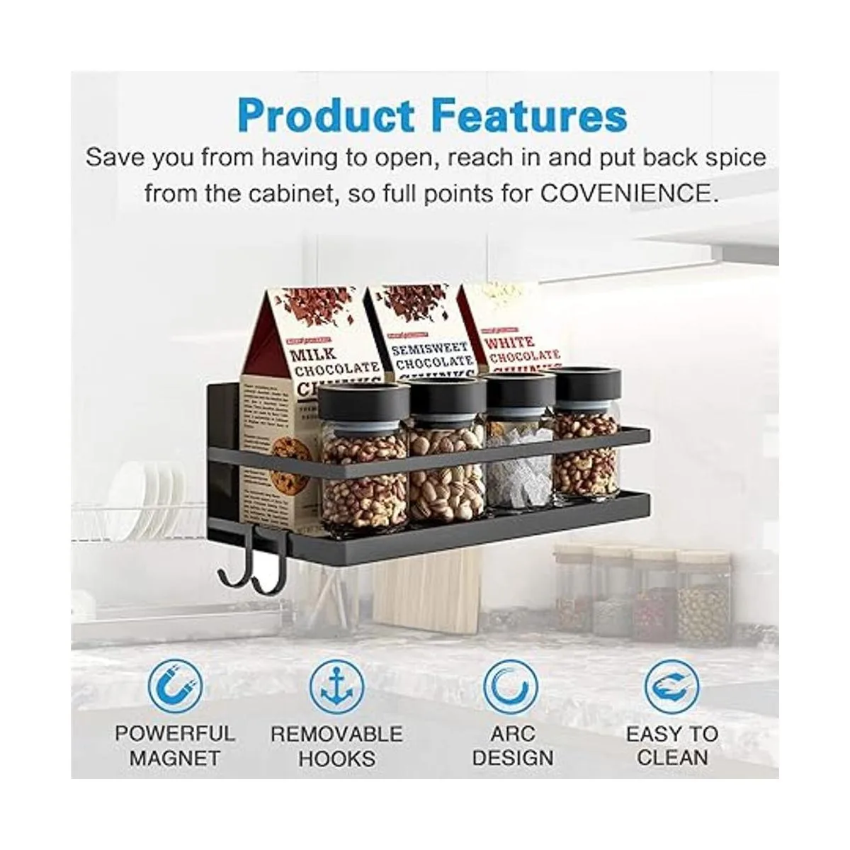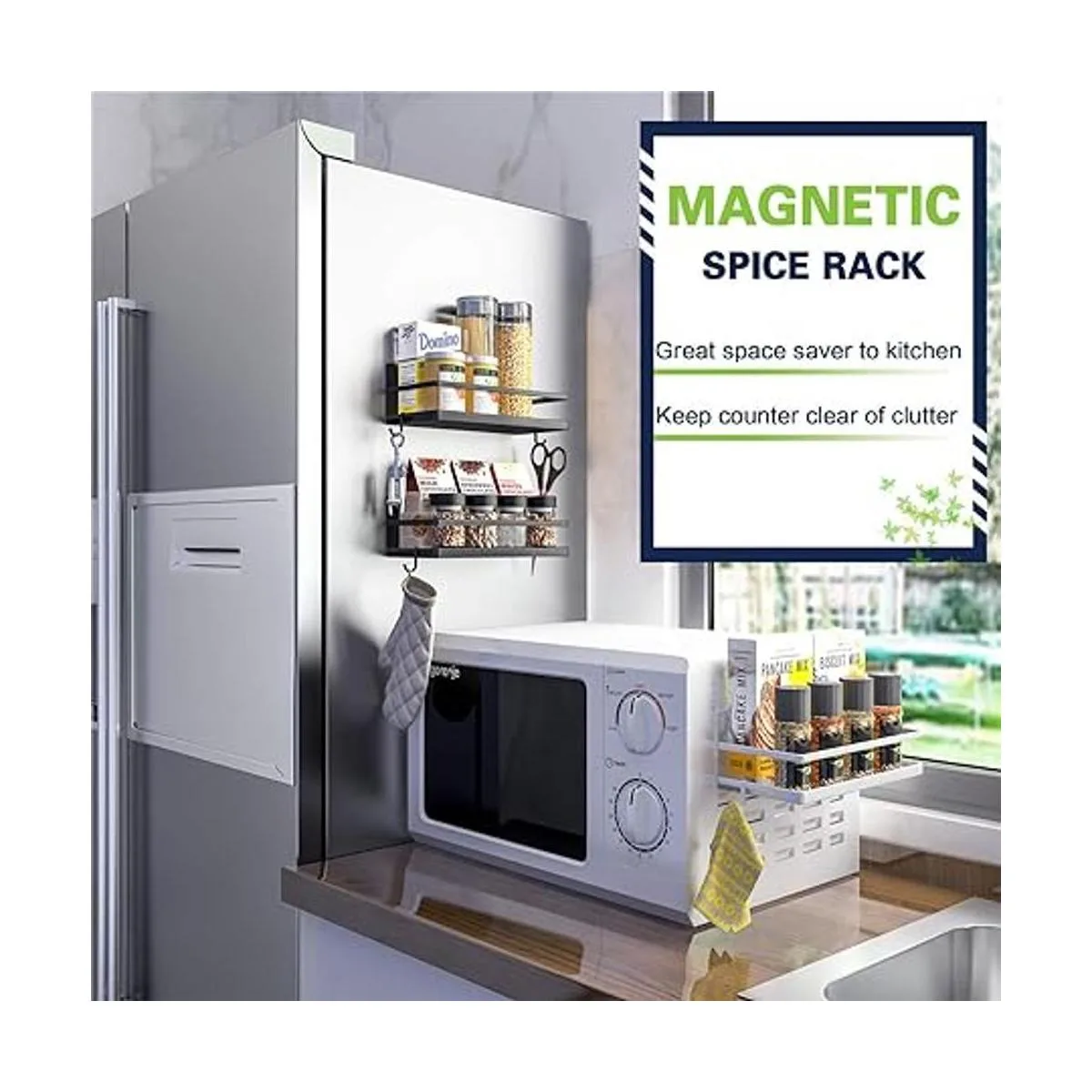 Funcional y versátil: el organizador de especias se puede fijar profundamente al lado del microondas, nevera, estufa, ahumador de barbacoa, lavadora, secadora para contener especias, salero, aceite de oliva, condimentos, té, jarabe de café, paquetes de azúcar, temporizador de cocina, suplementos y golosinas de mascotas, y cada cosa pequeña que uses todos los días.
