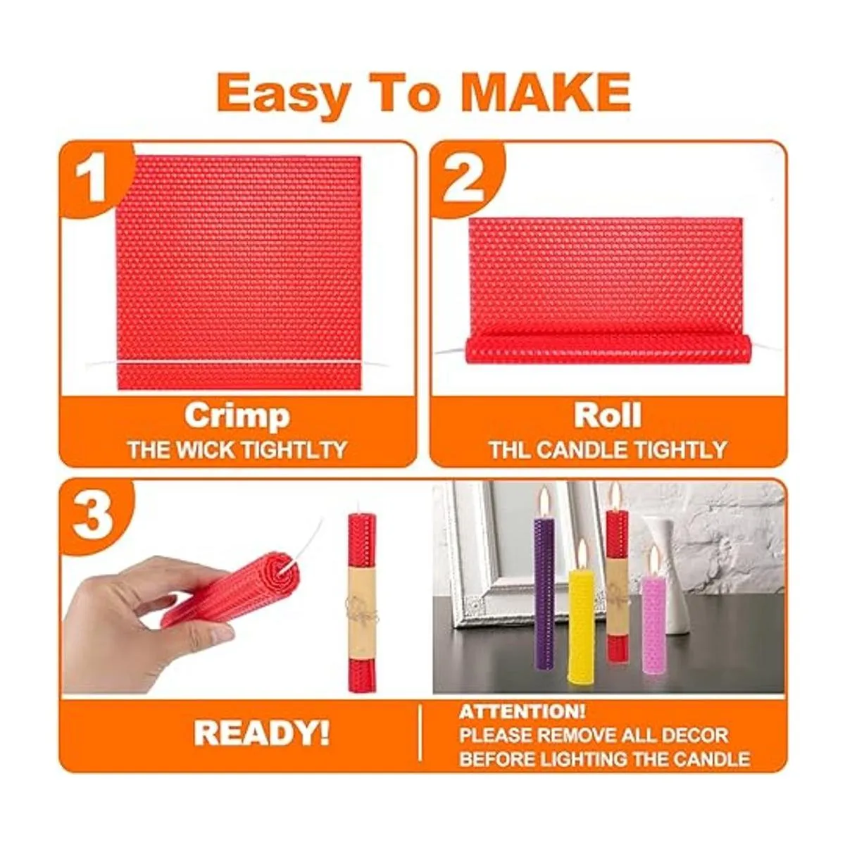 Hojas de cera de abeja natural: nuestras velas de cera de abeja están hechas de 100 cera de abeja, tienen una textura única de panal, seguro y saludable, puro, natural, renovable y ecológico.